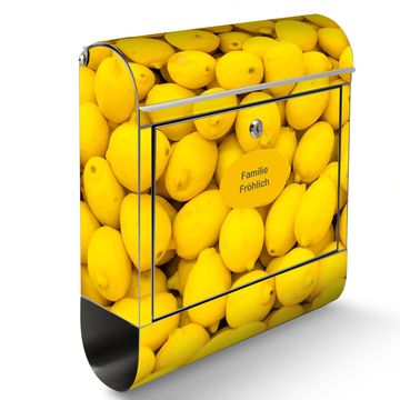 Der banjado Edelstahl Standbriefkasten mit Motiv Zitronen und eigenem Wunschtext bietet Ihnen mit seinem Fassungsvermögen genügend Platz auch für große A4 Sendungen. Das integrierte Zeitungsfach eignet sich hervorragend, um unkompliziert die Tageszeitung zu fassen.