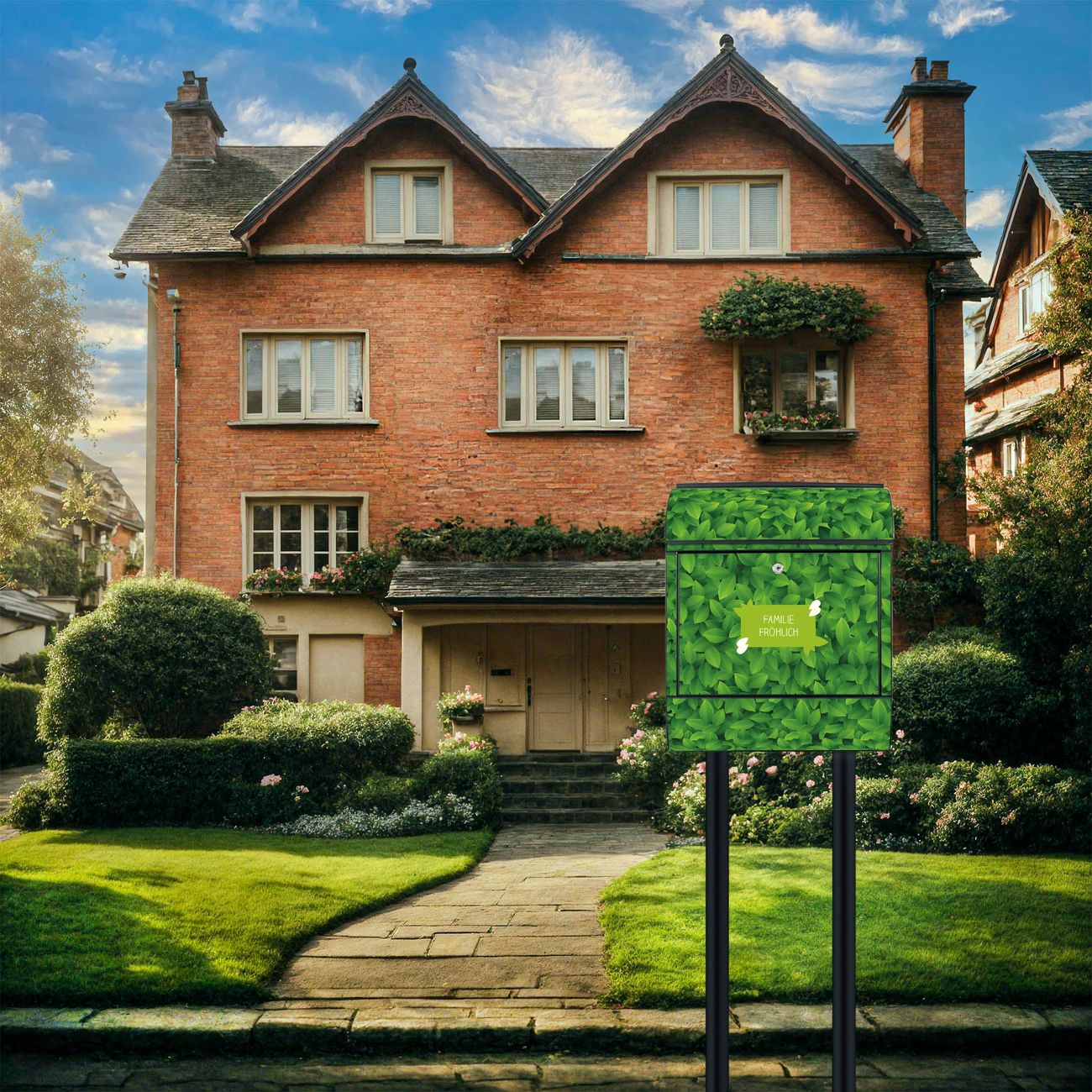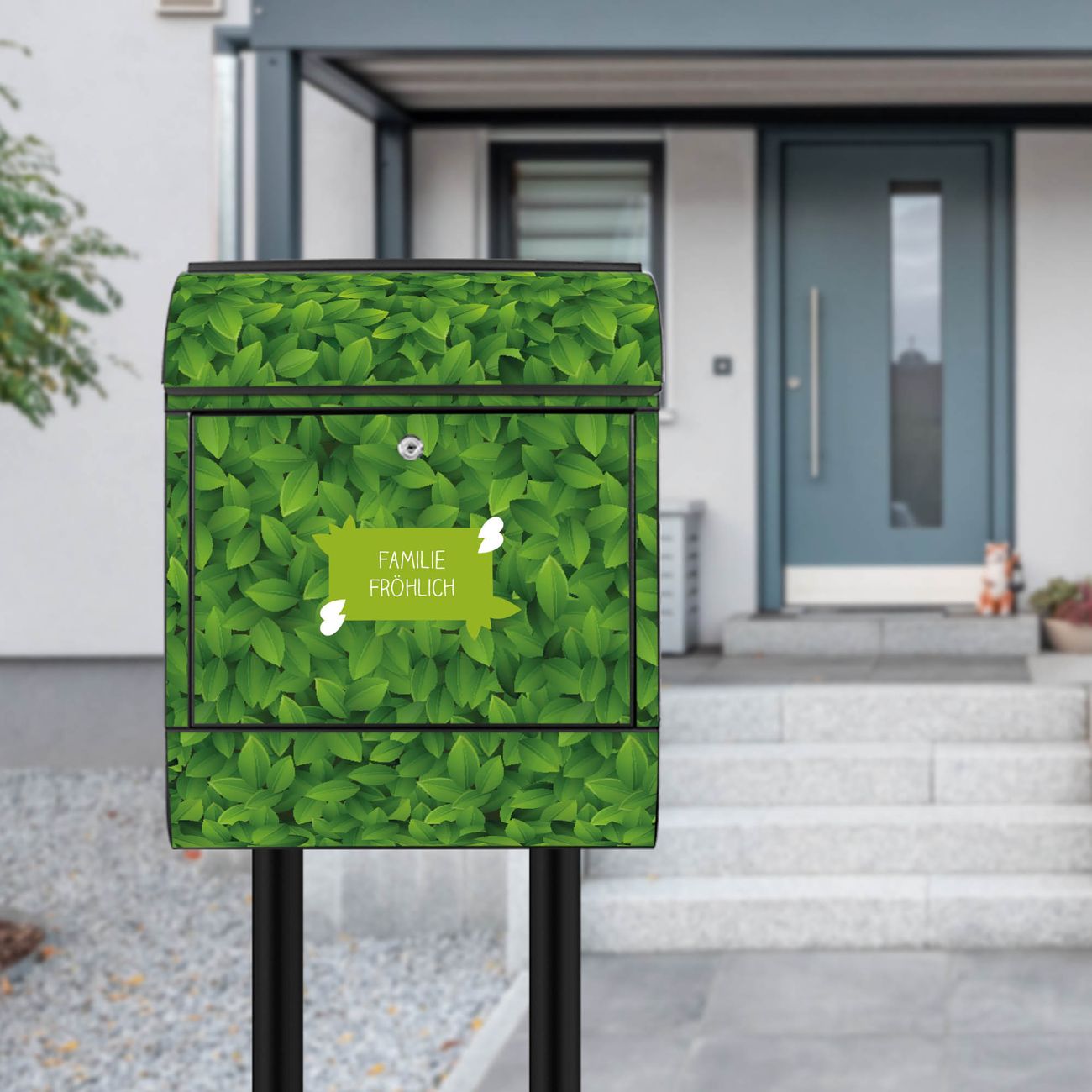 Standbriefkasten Stahl Grüne Blätter