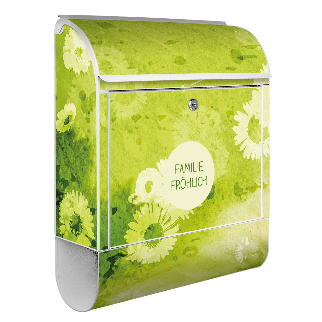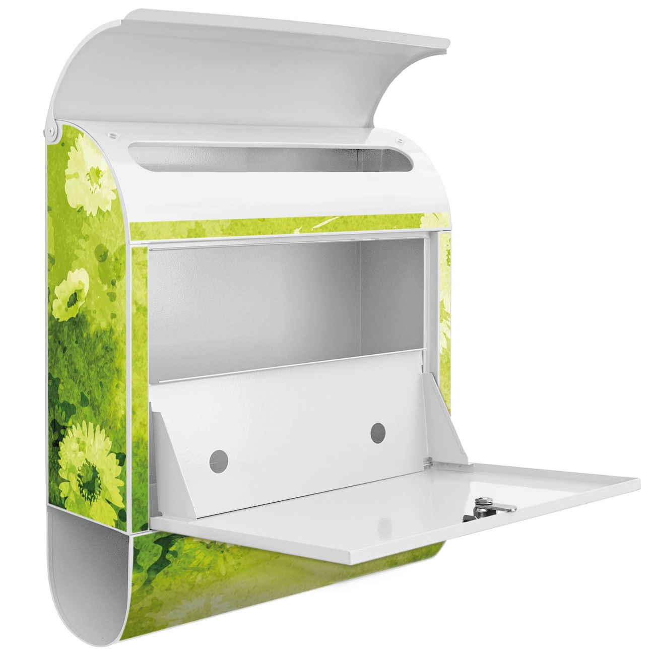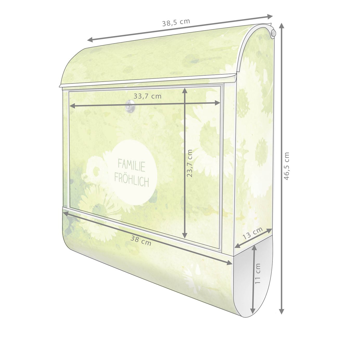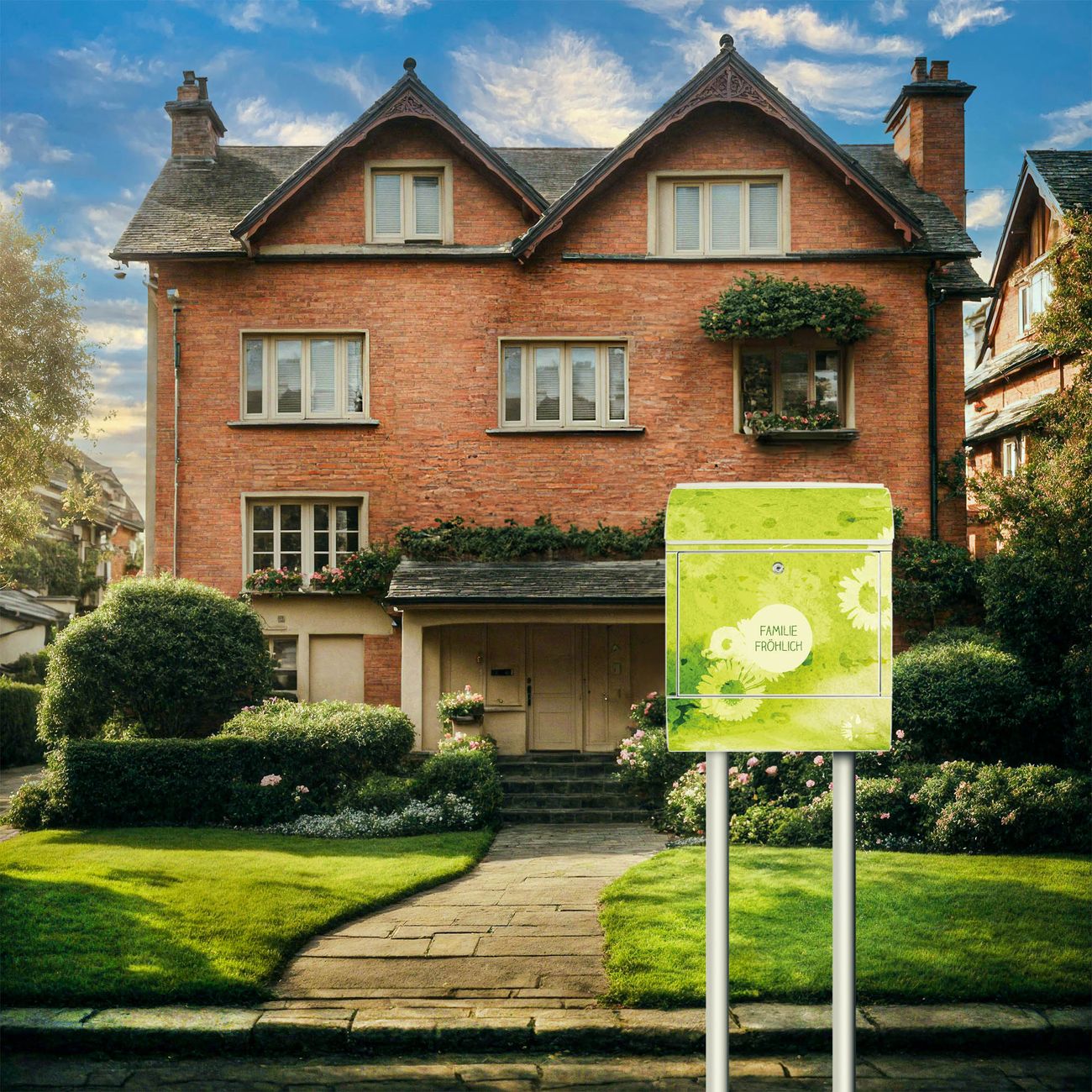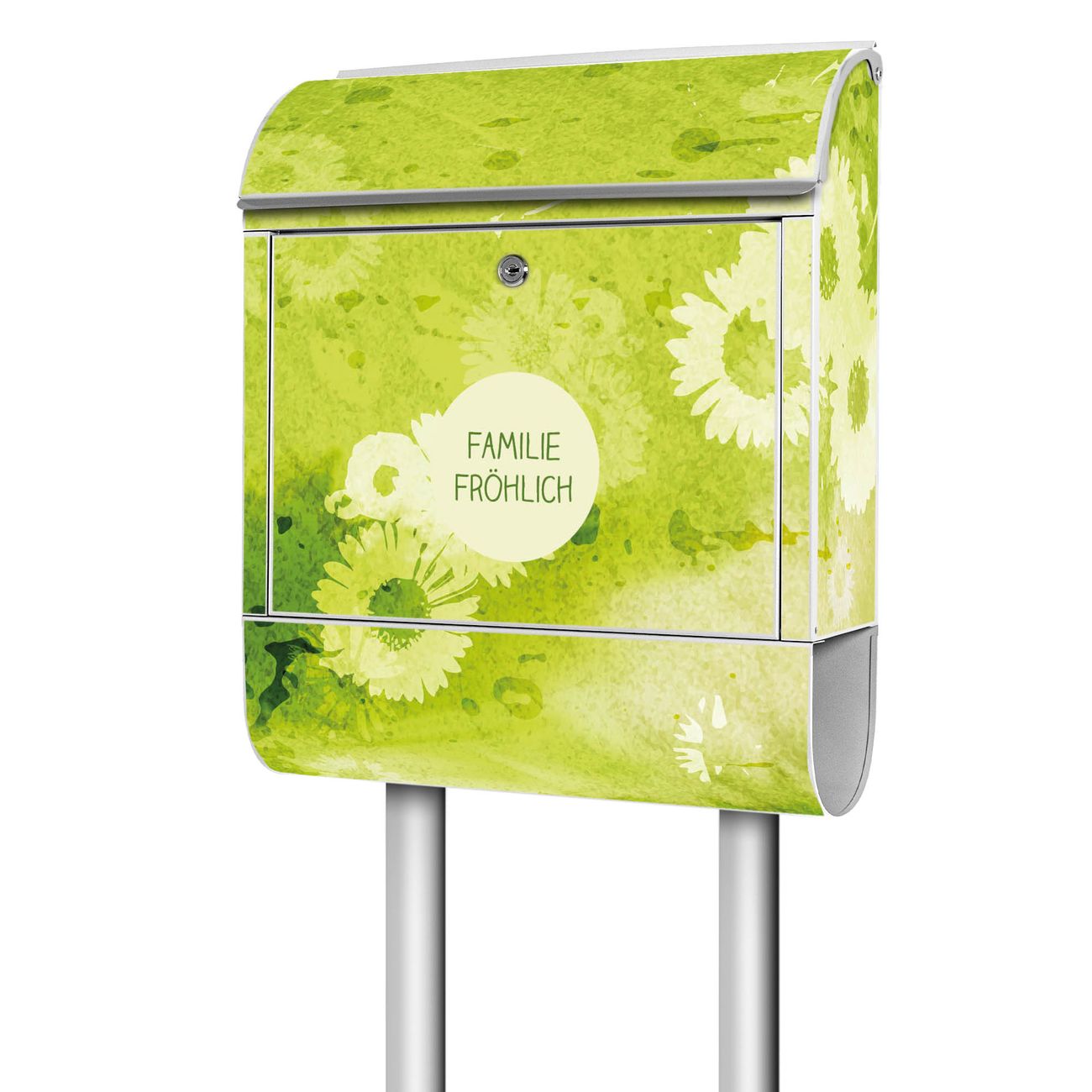 Der banjado Standbriefkasten mit Motiv Motiv Kamille Grün kombiniert großzügigen Stauraum mit modernem Design. Durch das geräumige Fach finden auch große A4-Sendungen problemlos Platz. Die integrierte Zeitungsrolle sorgt dafür, dass Tageszeitungen und Magazine separat und griffbereit untergebracht sind. Der pulverbeschichtete Standfuß ist farblich passend zum Briefkasten gestaltet und sorgt für ein stimmiges Gesamtbild. Mit dem individuellen Motiv setzen Sie einen optischen Akzent, der sowohl praktisch als auch dekorativ ist.