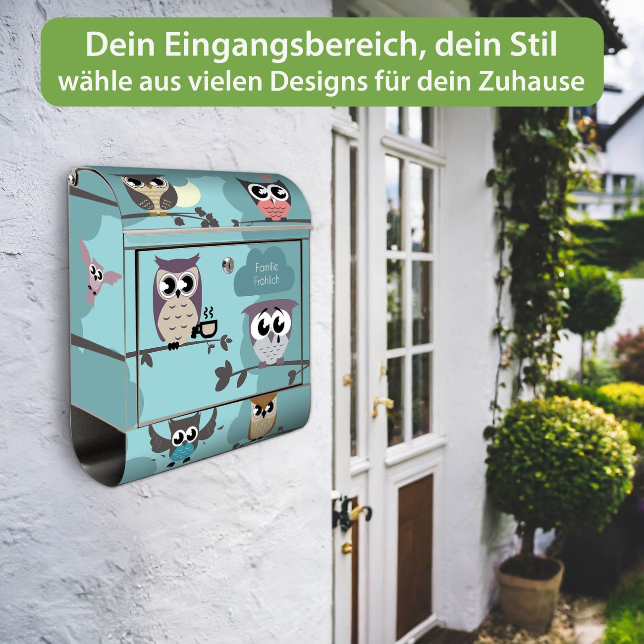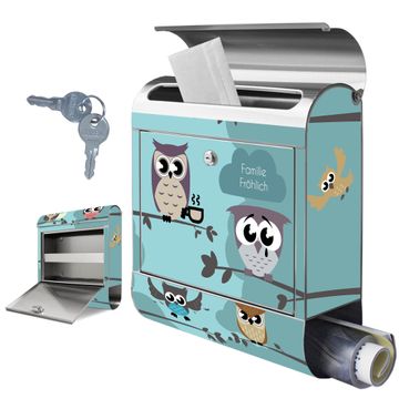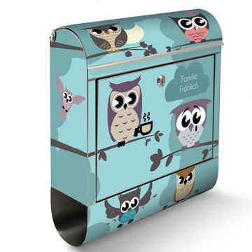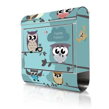 Wandbriefkasten Edelstahl Motiv Acht Eulen