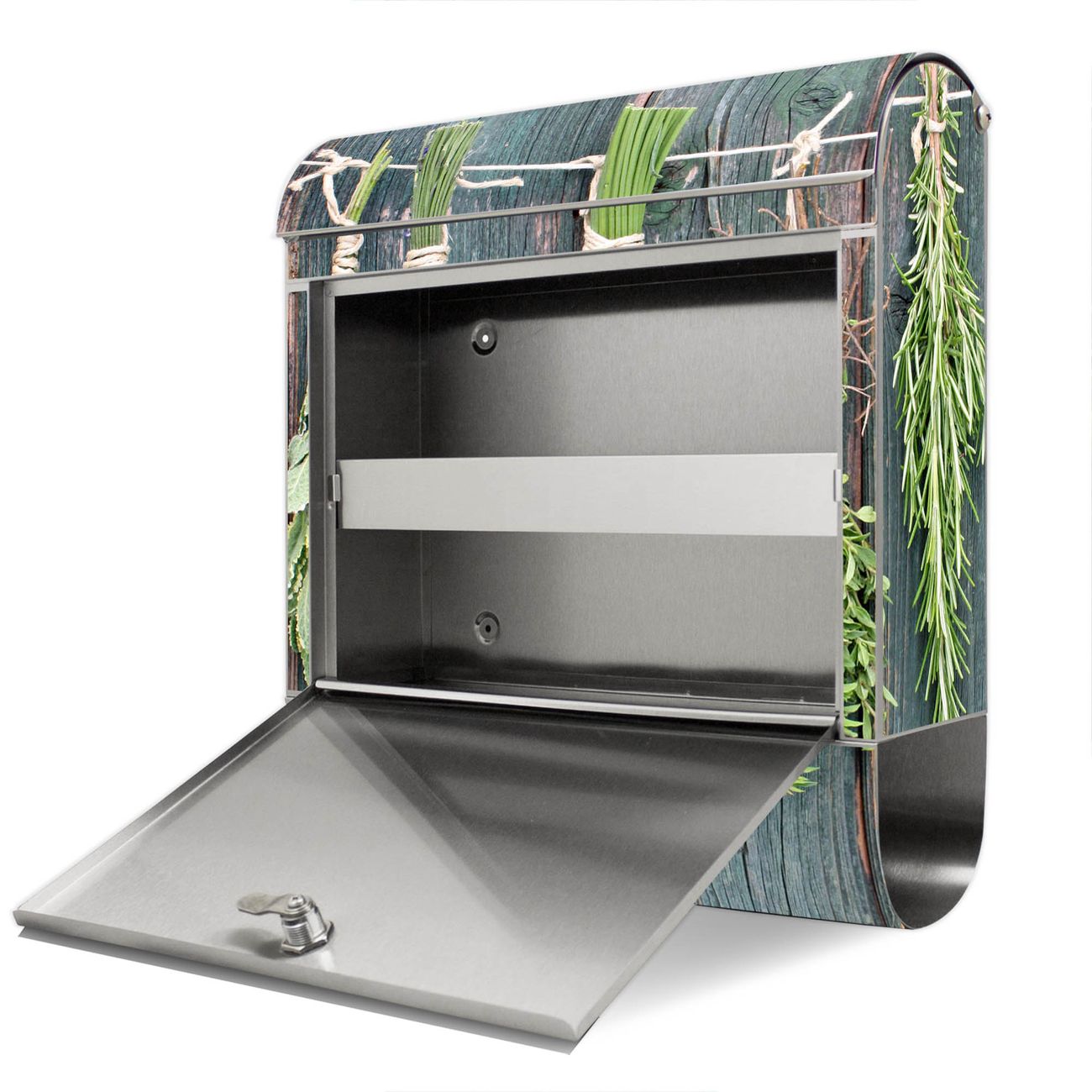 Wandbriefkasten Edelstahl Motiv Acht Kräuter