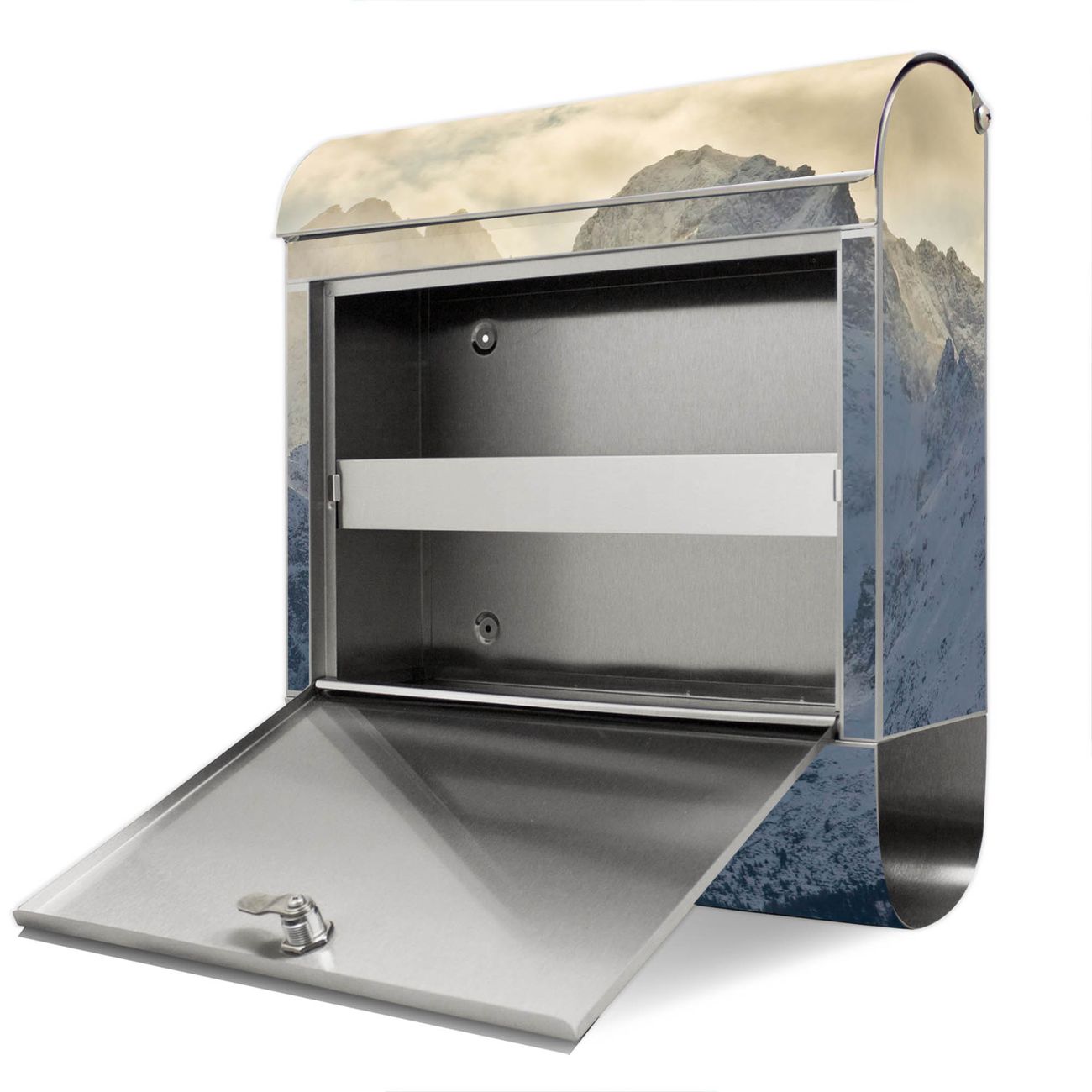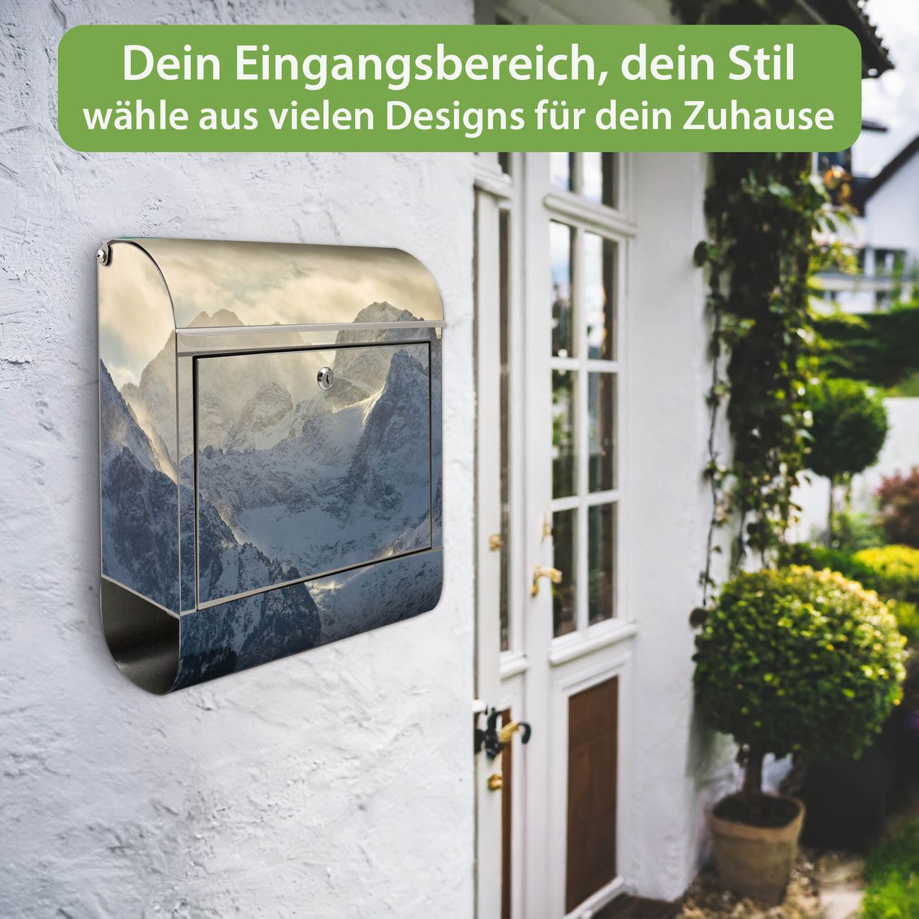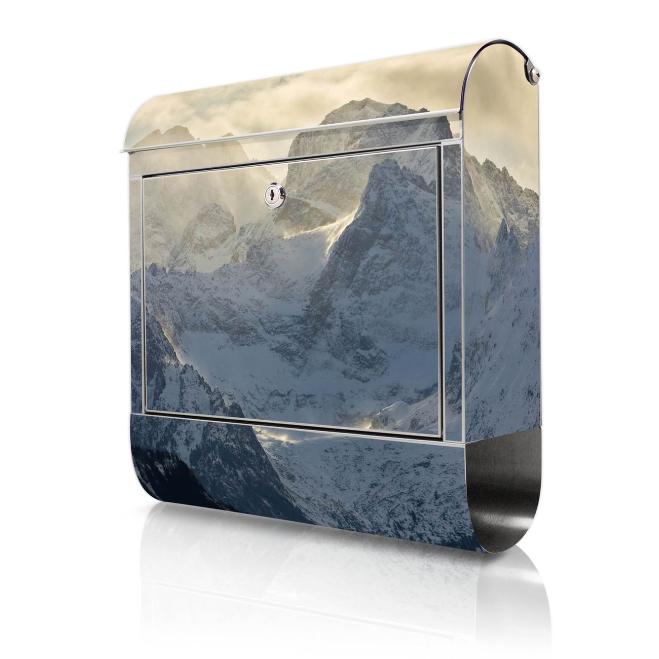 Wandbriefkasten Edelstahl Motiv Alpen im Sonnenschein