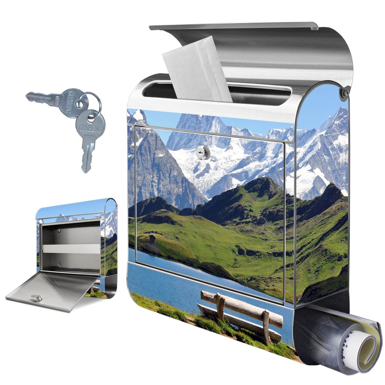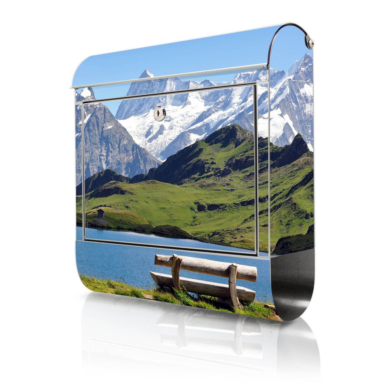 FUNKTION: Der banjado Edelstahl Briefkasten mit Motiv Motiv Alpen bietet Ihnen mit seinem Fassungsvermögen genügend Platz auch für große A4 Sendungen. Das integrierte Zeitungsfach eignet sich hervorragend um unkompliziert die Tageszeitung zu fassen. Auf Wunsch können Sie bei uns den passenden Ständer kaufen und so aus dem Wandbriefkasten einen Standbriefkasten machen. DESIGN: Der Motivbriefkasten hat ein sehr ansprechendes und ausgefallenes Design, damit entlocken Sie Ihren Nachbarn und dem Postboten ein Lächeln. Heben Sie Sich ab von der tristen grauen Masse ohne auf Funktionalität zu verzichten. DETAILS: Der Design Briefkasten mit Motiv Motiv Alpen besteht aus hochwertigem 18/0 Edelstahl. Das Motiv besteht aus einer wetter- und UV-resistenten Folie, die mit einem Schutzlaminat überzogen ist. Der Briefkasten wird mit Montagematerial und zwei Schlüsseln geliefert. NUTZEN: Sie können diesen Briefkasten sowohl als Wandbriefkasten montieren oder einen passenden Ständer auswählen und als Standbriefkasten einbetonieren. Die Größe bietet genügend Platz für Sendungen aller Art, das hochwertige Edelstahl ist rostfrei und die Motivfolie absolut wetterfest. SCHUTZ: Um Ihre Post optimal vor Witterungseinflüssen wie Starkregen zu schützen, empfehlen wir, den Briefkasten geschützt anzubringen. BANJADO: Ihr Briefkasten wird in Sachsen in einer kleinen Manufaktur von Hand veredelt. Die Motivfolie ist lösungsmittelfrei und schutzlaminiert, dies sorgt für einen langen Halt. Wir legen großen Wert auf die Verbindung von Funktionalität und Design. Sie erhalten Handarbeit aus Sachsen.