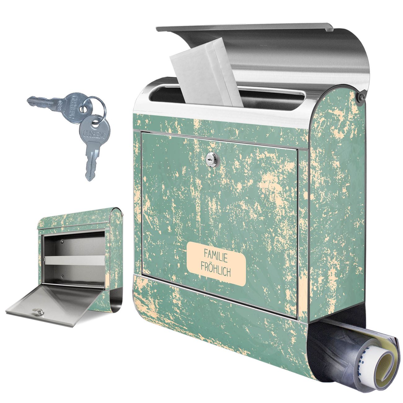 Wandbriefkasten Edelstahl Motiv Altes Papier