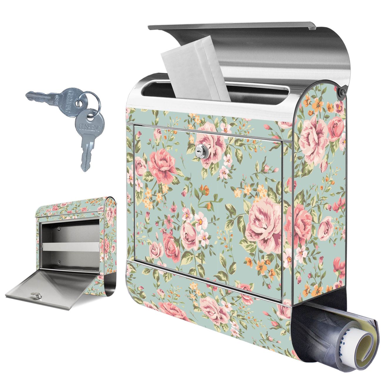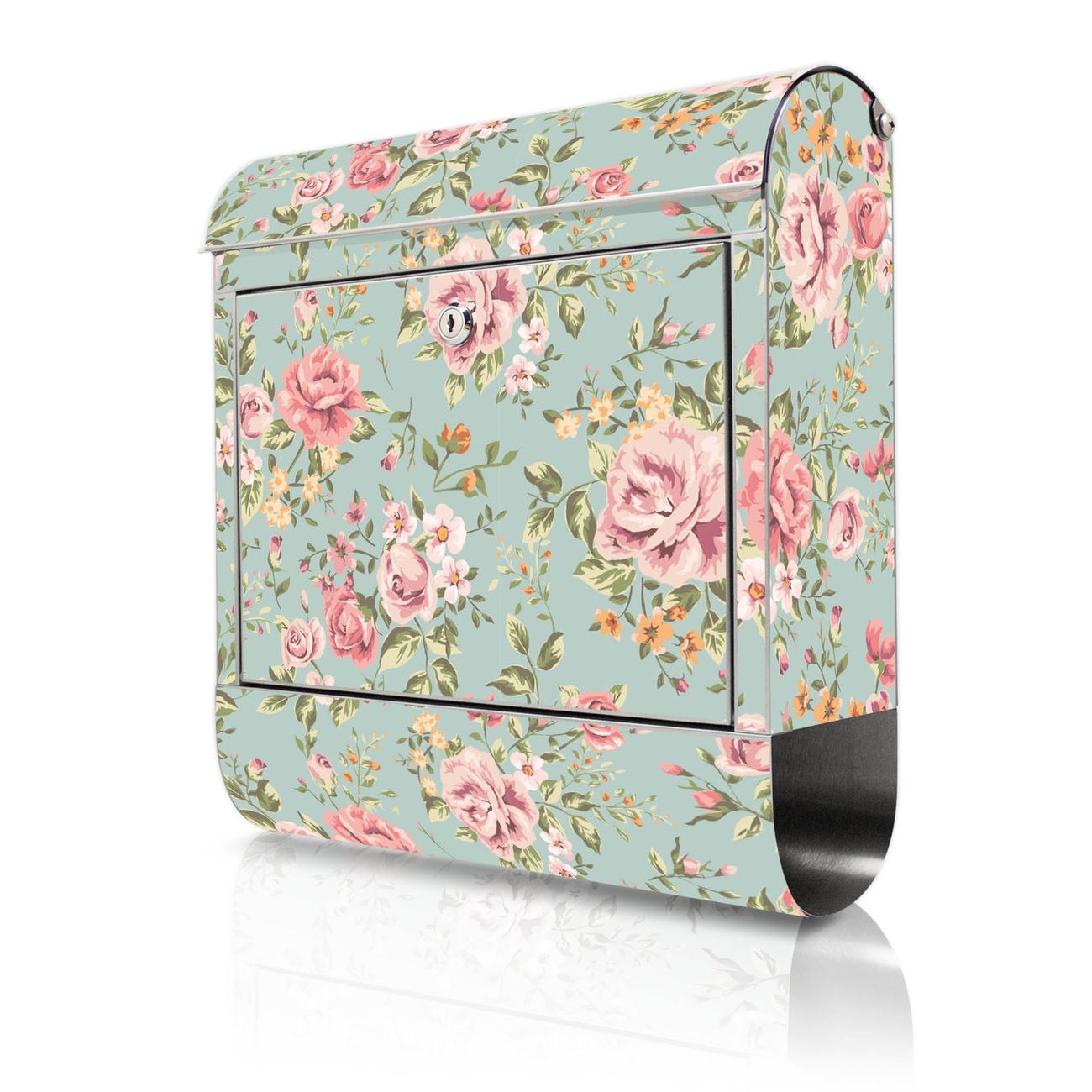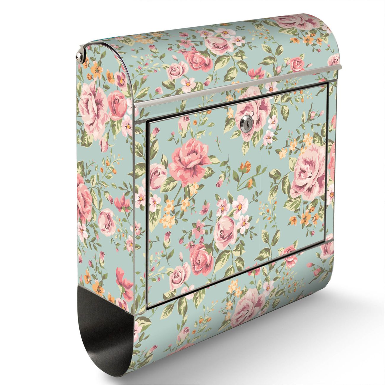 Wandbriefkasten Edelstahl Motiv Altrosa Blume
