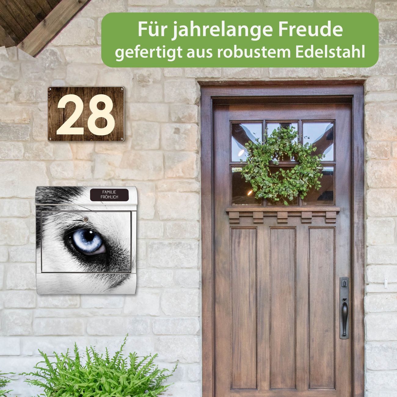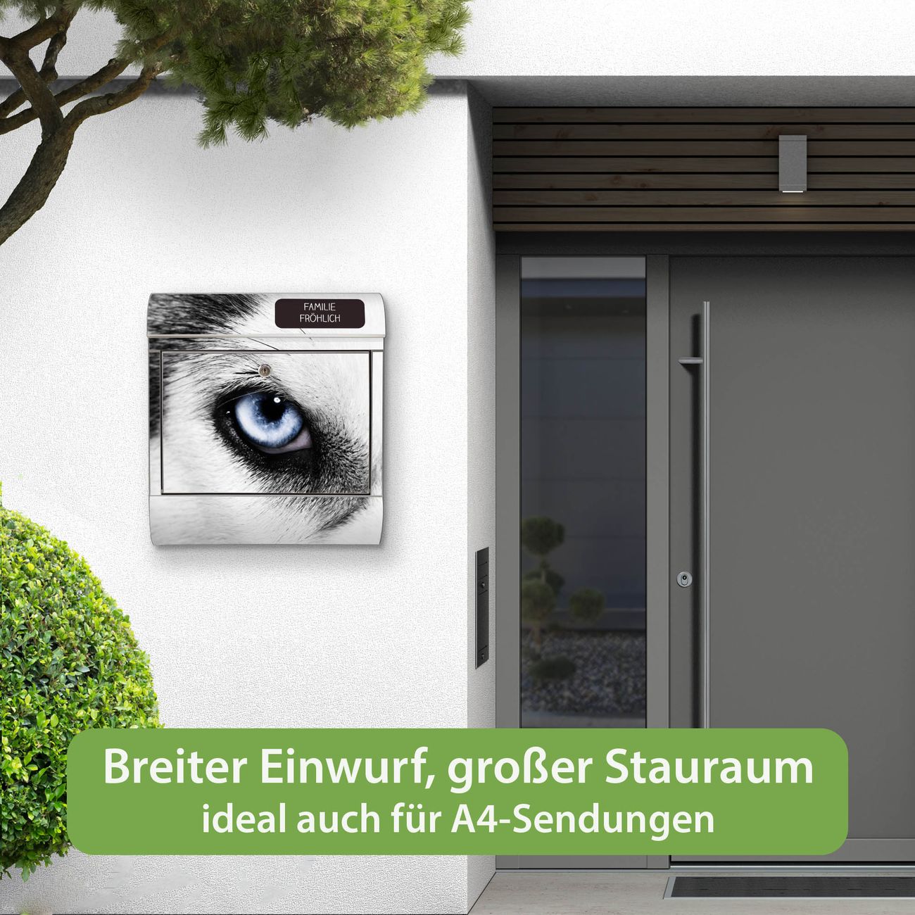 FUNKTION: Der banjado Edelstahl Briefkasten mit Motiv Motiv Anouk bietet Ihnen mit seinem Fassungsvermögen genügend Platz auch für große A4 Sendungen. Das integrierte Zeitungsfach eignet sich hervorragend um unkompliziert die Tageszeitung zu fassen. Auf Wunsch können Sie bei uns den passenden Ständer kaufen und so aus dem Wandbriefkasten einen Standbriefkasten machen. DESIGN: Der Motivbriefkasten hat ein sehr ansprechendes und ausgefallenes Design, damit entlocken Sie Ihren Nachbarn und dem Postboten ein Lächeln. Heben Sie Sich ab von der tristen grauen Masse ohne auf Funktionalität zu verzichten. DETAILS: Der Design Briefkasten mit Motiv Motiv Anouk besteht aus hochwertigem 18/0 Edelstahl. Das Motiv besteht aus einer wetter- und UV-resistenten Folie, die mit einem Schutzlaminat überzogen ist. Der Briefkasten wird mit Montagematerial und zwei Schlüsseln geliefert. NUTZEN: Sie können diesen Briefkasten sowohl als Wandbriefkasten montieren oder einen passenden Ständer auswählen und als Standbriefkasten einbetonieren. Die Größe bietet genügend Platz für Sendungen aller Art, das hochwertige Edelstahl ist rostfrei und die Motivfolie absolut wetterfest. SCHUTZ: Um Ihre Post optimal vor Witterungseinflüssen wie Starkregen zu schützen, empfehlen wir, den Briefkasten geschützt anzubringen. BANJADO: Ihr Briefkasten wird in Sachsen in einer kleinen Manufaktur von Hand veredelt. Die Motivfolie ist lösungsmittelfrei und schutzlaminiert, dies sorgt für einen langen Halt. Wir legen großen Wert auf die Verbindung von Funktionalität und Design. Sie erhalten Handarbeit aus Sachsen.