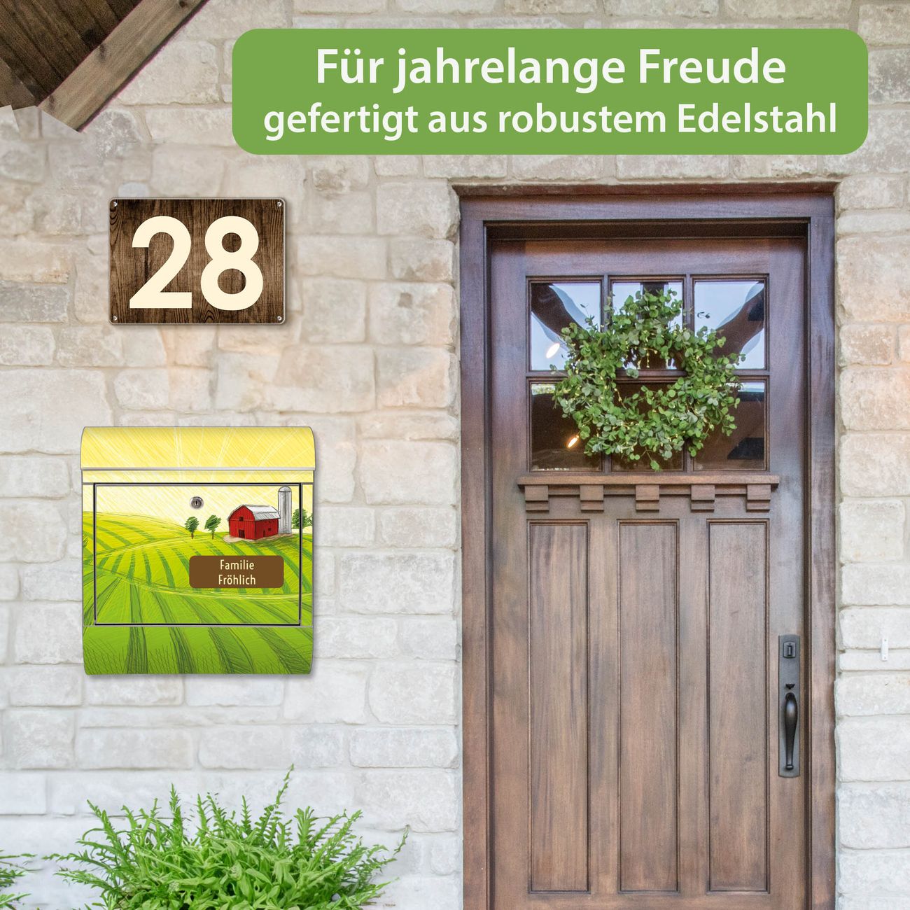 Wandbriefkasten Edelstahl Motiv Auf dem Land