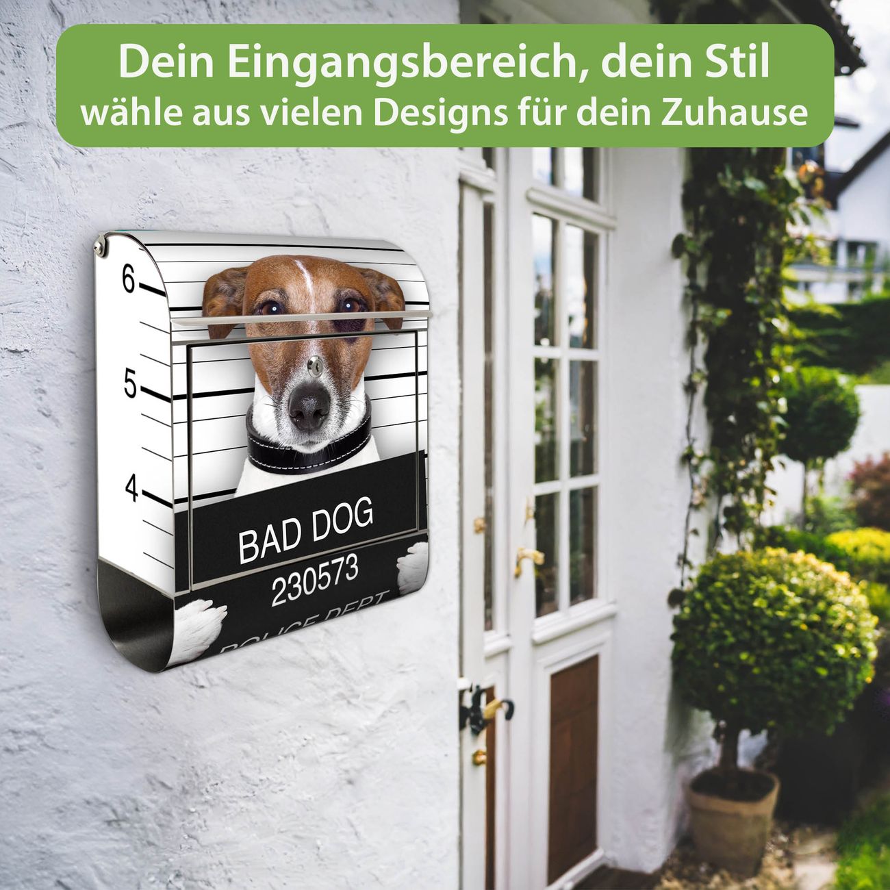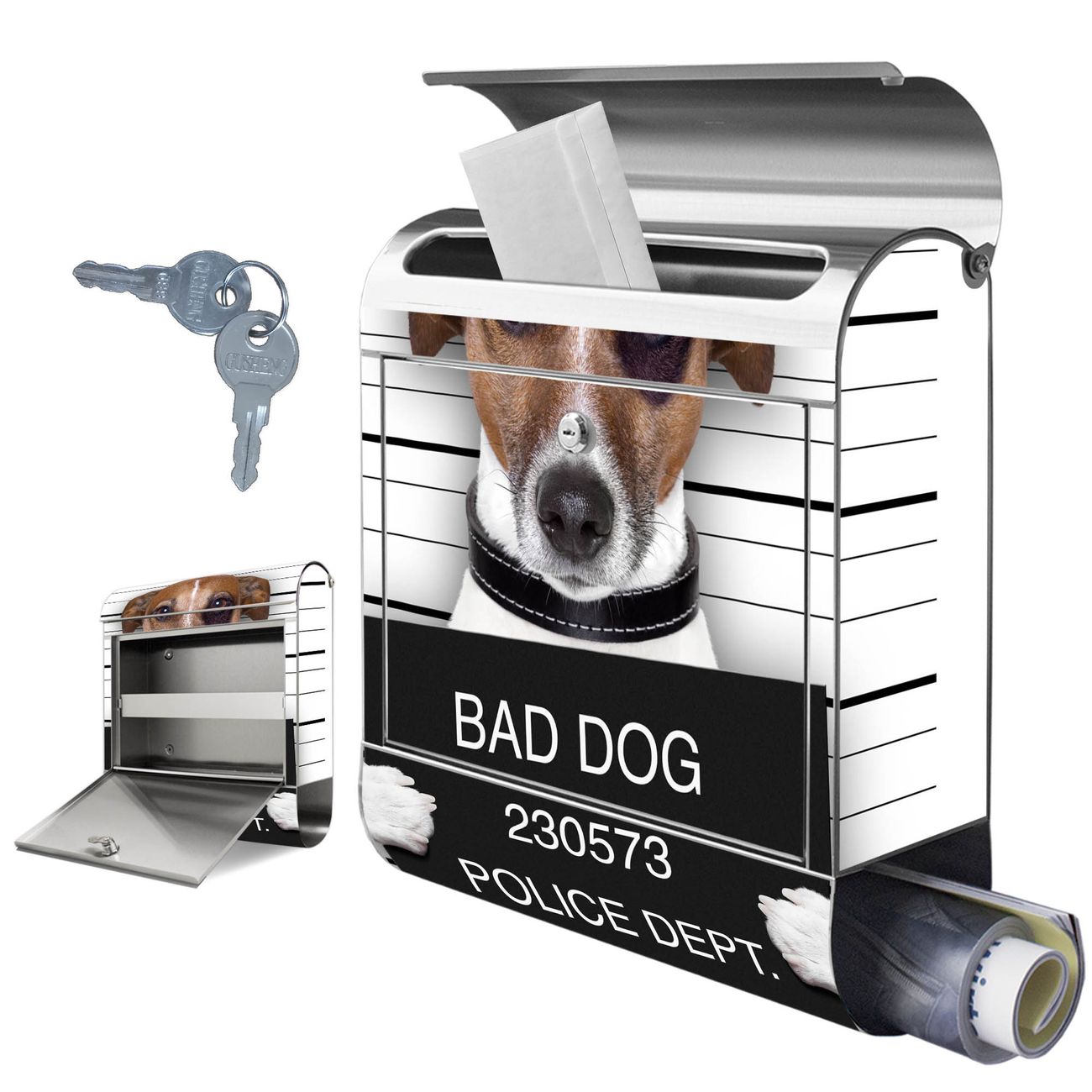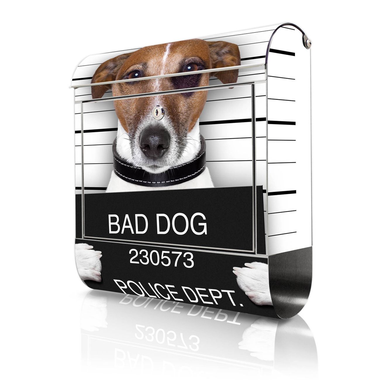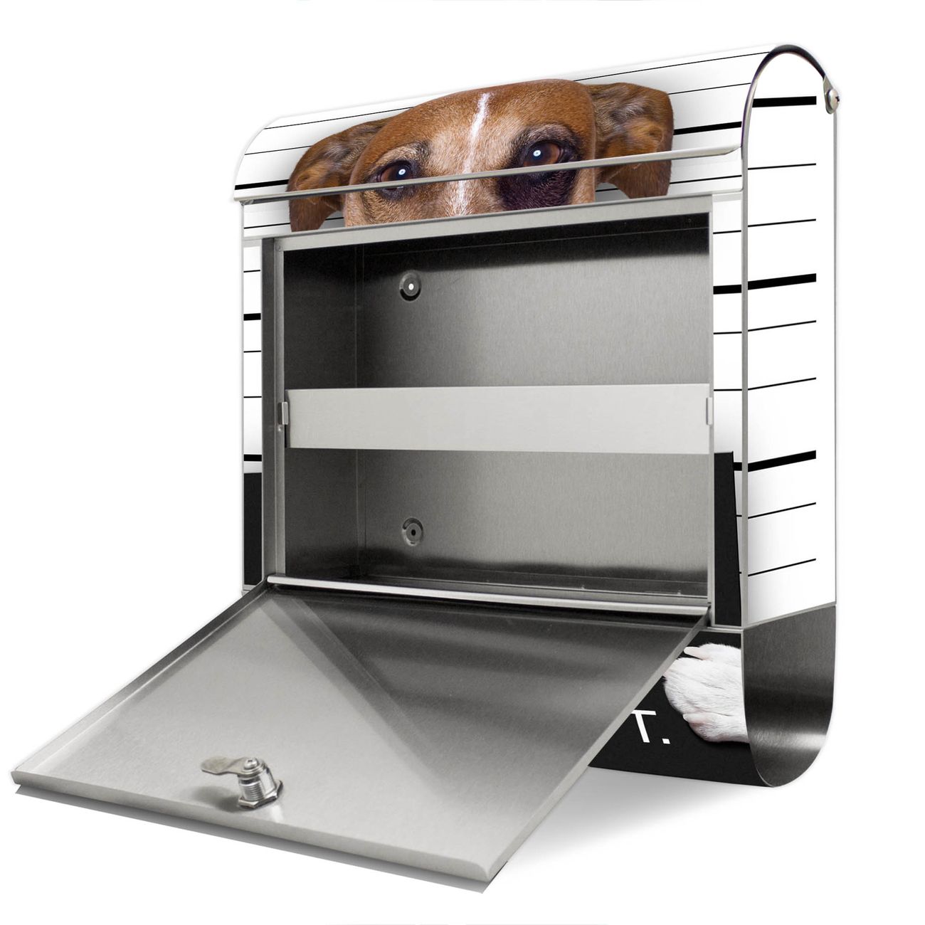 Wandbriefkasten Edelstahl Motiv Bad Dog Jack Russel