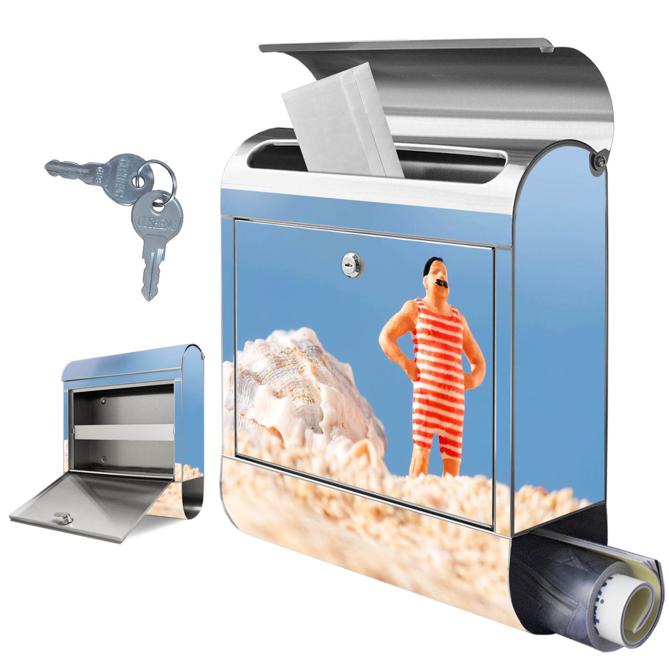 Wandbriefkasten Edelstahl Motiv Bademeister