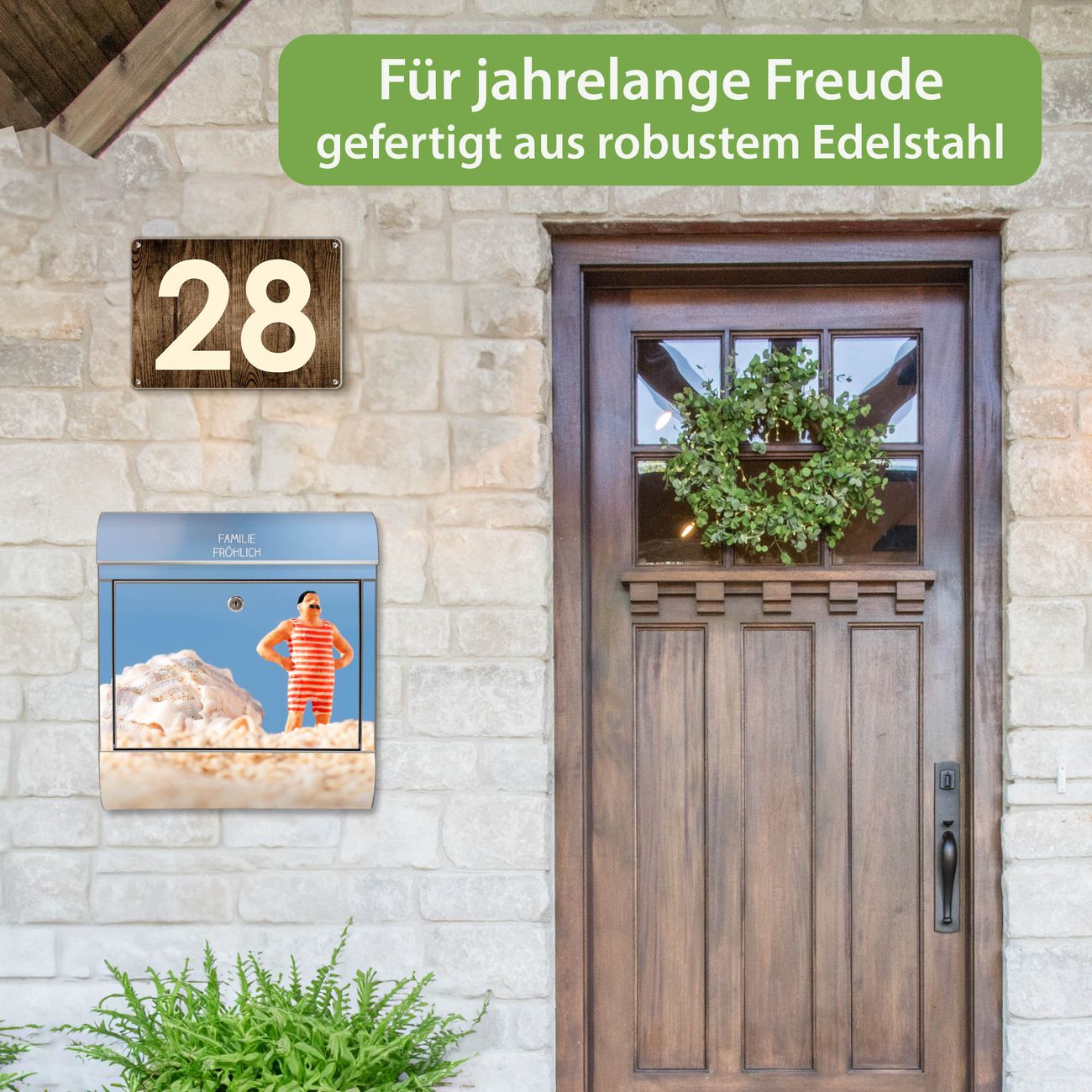 Wandbriefkasten Edelstahl Motiv Bademeister