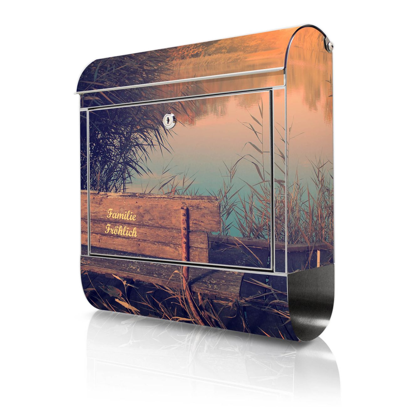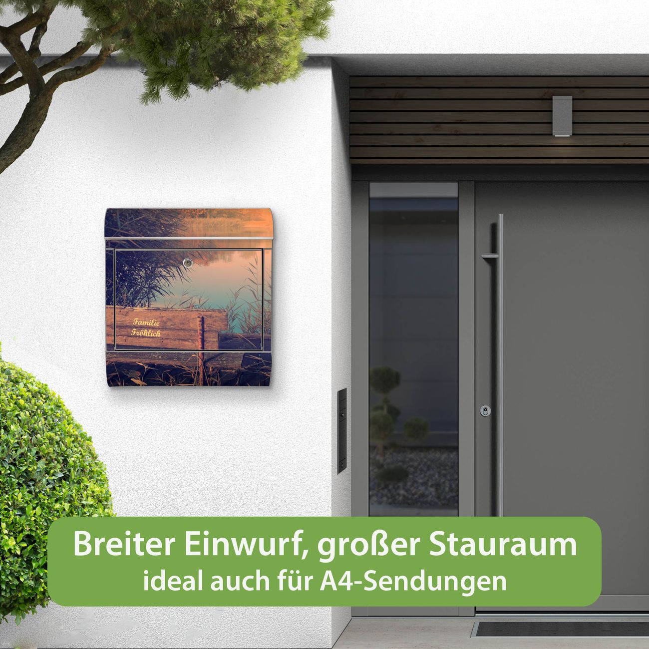 Wandbriefkasten Edelstahl Motiv Bank Am See