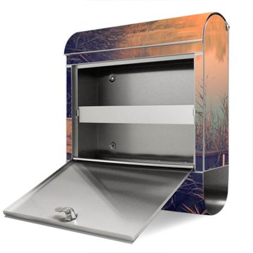 FUNKTION: Der banjado Edelstahl Briefkasten mit Motiv Motiv Bank Am See bietet Ihnen mit seinem Fassungsvermögen genügend Platz auch für große A4 Sendungen. Das integrierte Zeitungsfach eignet sich hervorragend um unkompliziert die Tageszeitung zu fassen. Auf Wunsch können Sie bei uns den passenden Ständer kaufen und so aus dem Wandbriefkasten einen Standbriefkasten machen. DESIGN: Der Motivbriefkasten hat ein sehr ansprechendes und ausgefallenes Design, damit entlocken Sie Ihren Nachbarn und dem Postboten ein Lächeln. Heben Sie Sich ab von der tristen grauen Masse ohne auf Funktionalität zu verzichten. DETAILS: Der Design Briefkasten mit Motiv Motiv Bank Am See besteht aus hochwertigem 18/0 Edelstahl. Das Motiv besteht aus einer wetter- und UV-resistenten Folie, die mit einem Schutzlaminat überzogen ist. Der Briefkasten wird mit Montagematerial und zwei Schlüsseln geliefert. NUTZEN: Sie können diesen Briefkasten sowohl als Wandbriefkasten montieren oder einen passenden Ständer auswählen und als Standbriefkasten einbetonieren. Die Größe bietet genügend Platz für Sendungen aller Art, das hochwertige Edelstahl ist rostfrei und die Motivfolie absolut wetterfest. SCHUTZ: Um Ihre Post optimal vor Witterungseinflüssen wie Starkregen zu schützen, empfehlen wir, den Briefkasten geschützt anzubringen. BANJADO: Ihr Briefkasten wird in Sachsen in einer kleinen Manufaktur von Hand veredelt. Die Motivfolie ist lösungsmittelfrei und schutzlaminiert, dies sorgt für einen langen Halt. Wir legen großen Wert auf die Verbindung von Funktionalität und Design. Sie erhalten Handarbeit aus Sachsen.