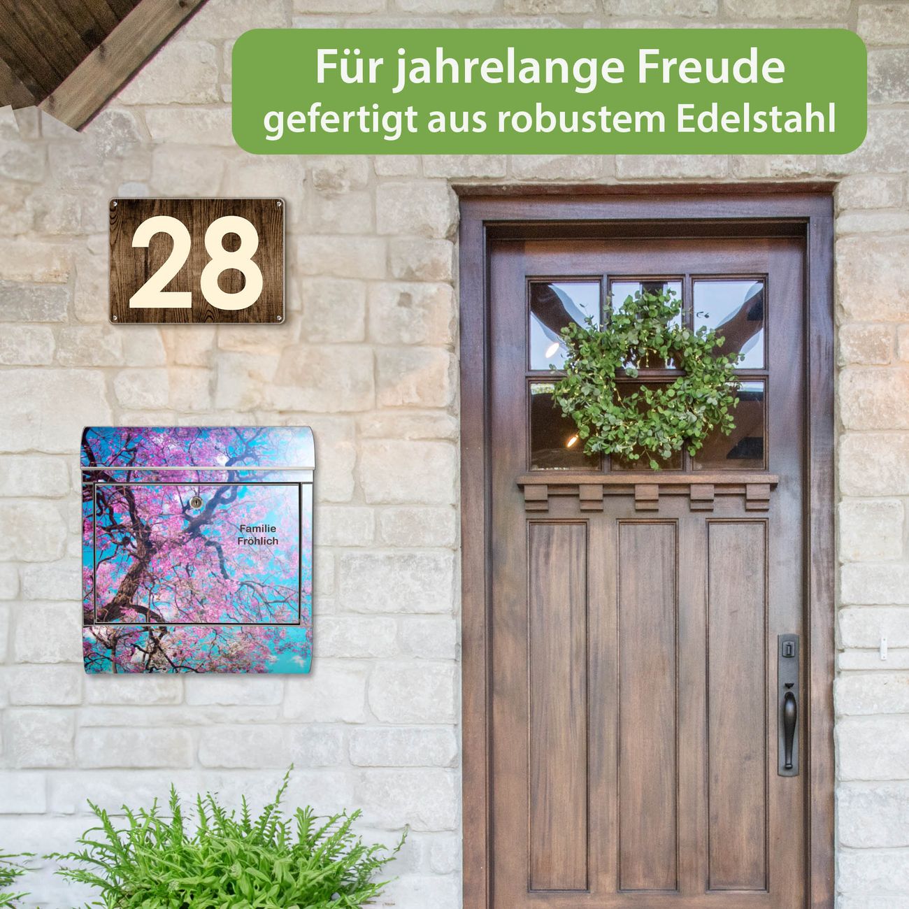 Der Vorschau-Text Familie Fröhlich wird durch Ihren persönlichen Wunschtext ersetzt. Die Schriftart und Farbe bleiben gleich wie in der Vorschau.