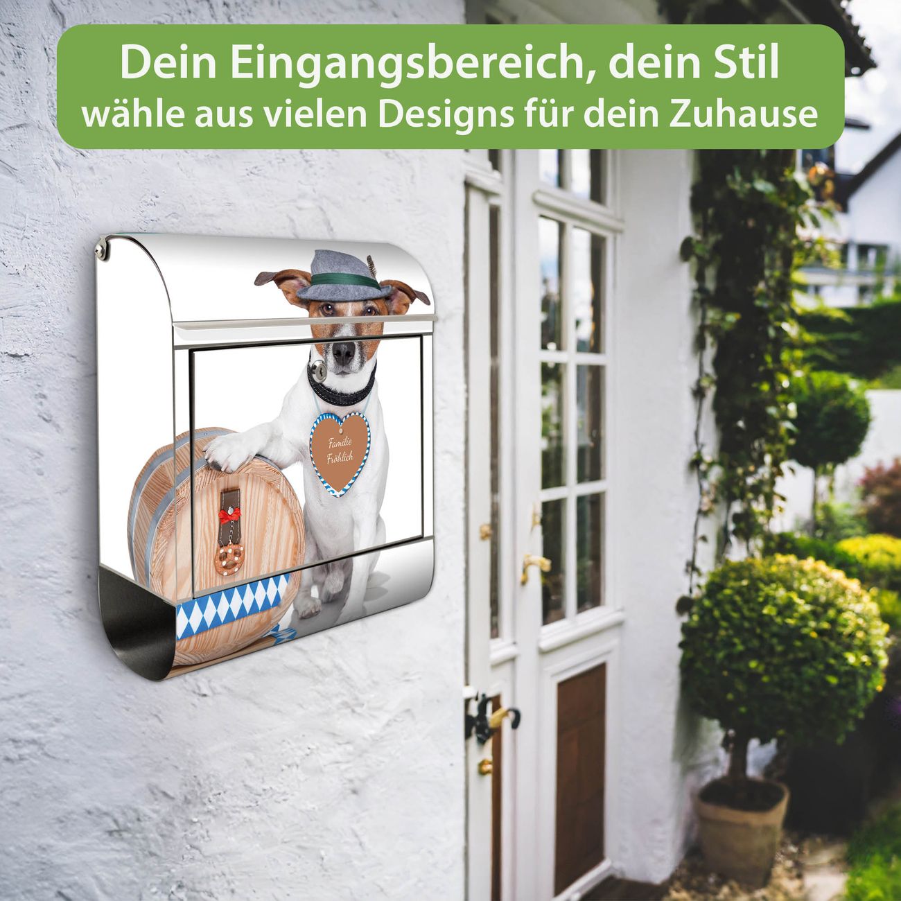 Wandbriefkasten Edelstahl Motiv Bayer Jack Russel