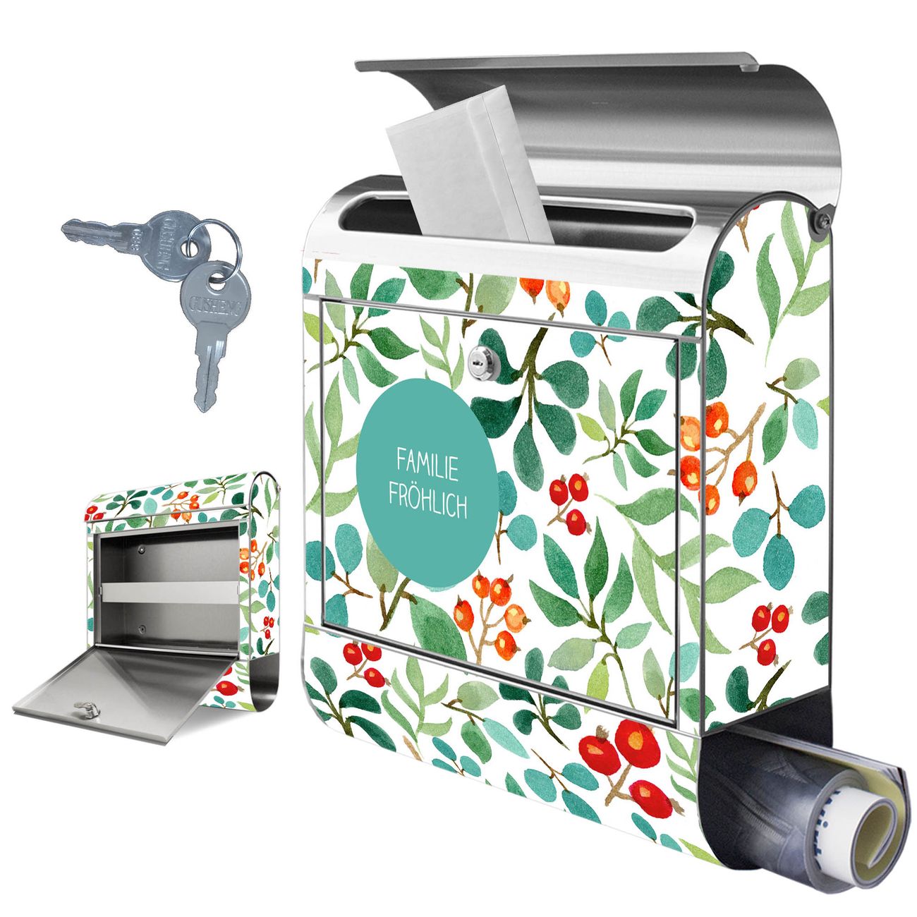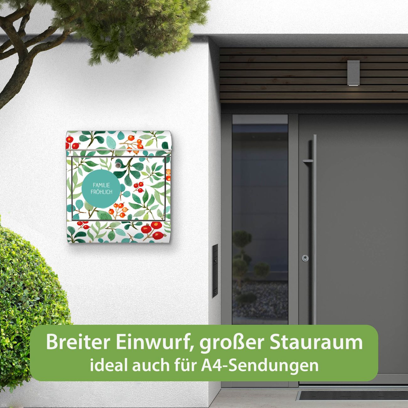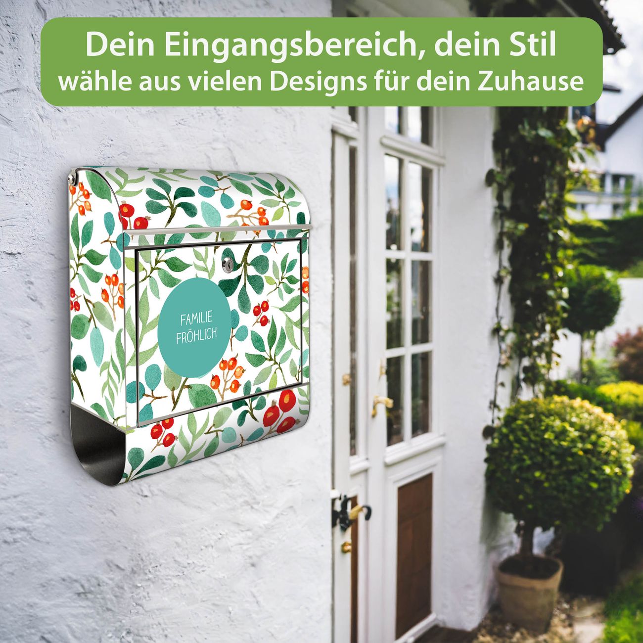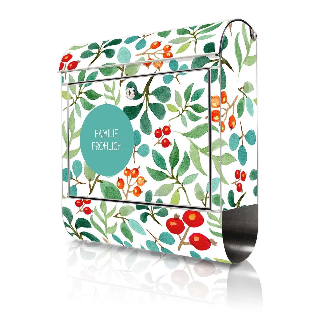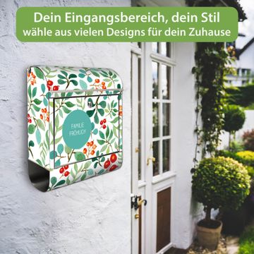 Wandbriefkasten Edelstahl Motiv Beeren und Blätter