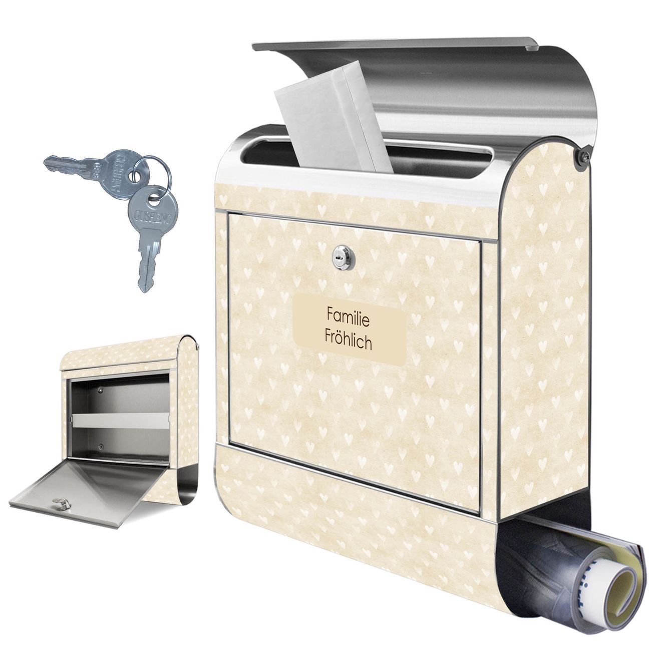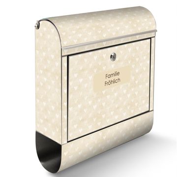 Wandbriefkasten Edelstahl Motiv Beige Herzen