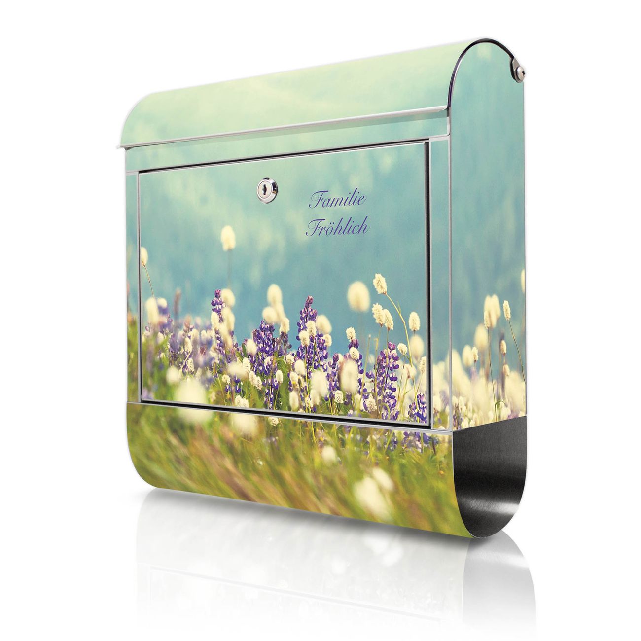 Wandbriefkasten Edelstahl Motiv Bergwiese