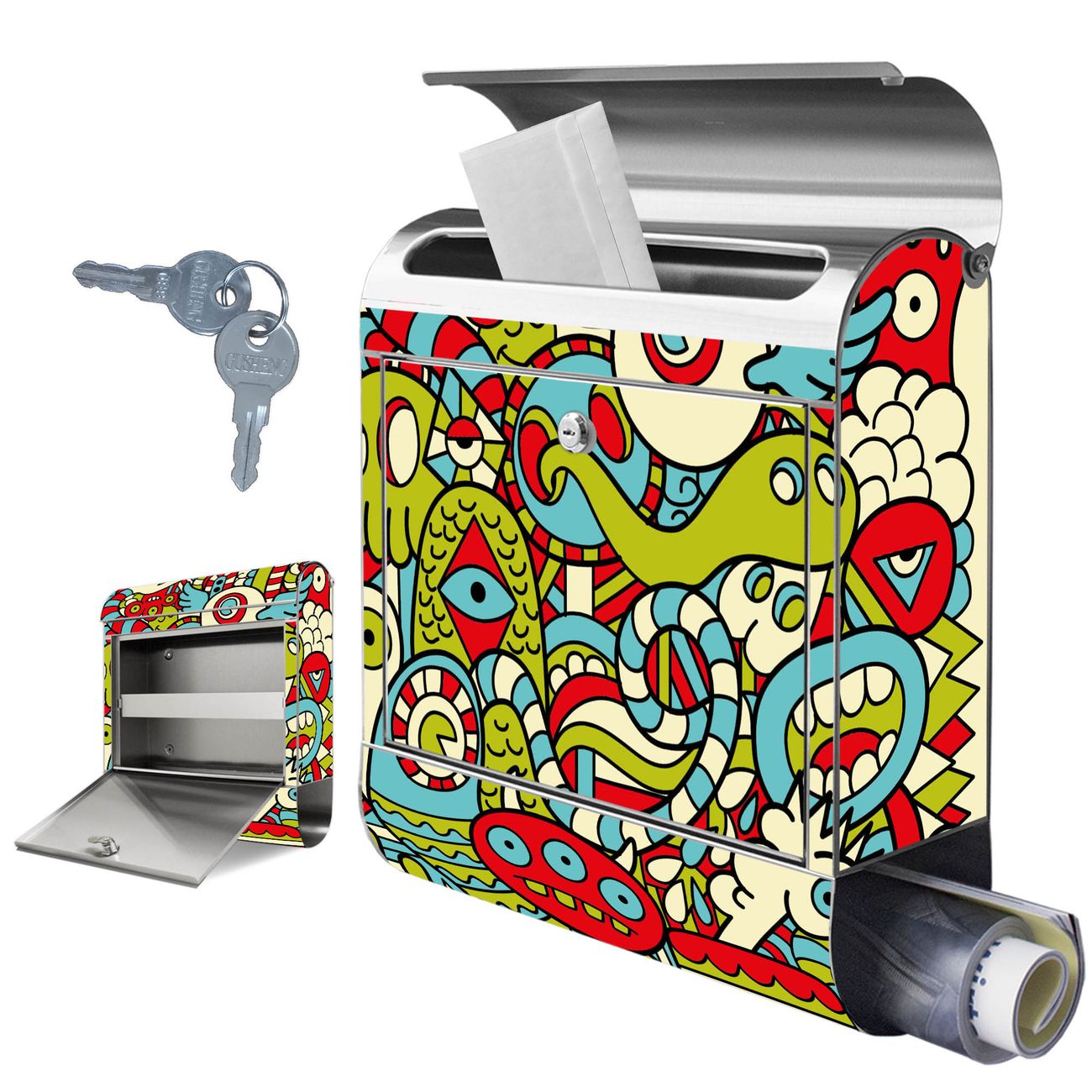 Wandbriefkasten Edelstahl Motiv Birds Worms Freaks