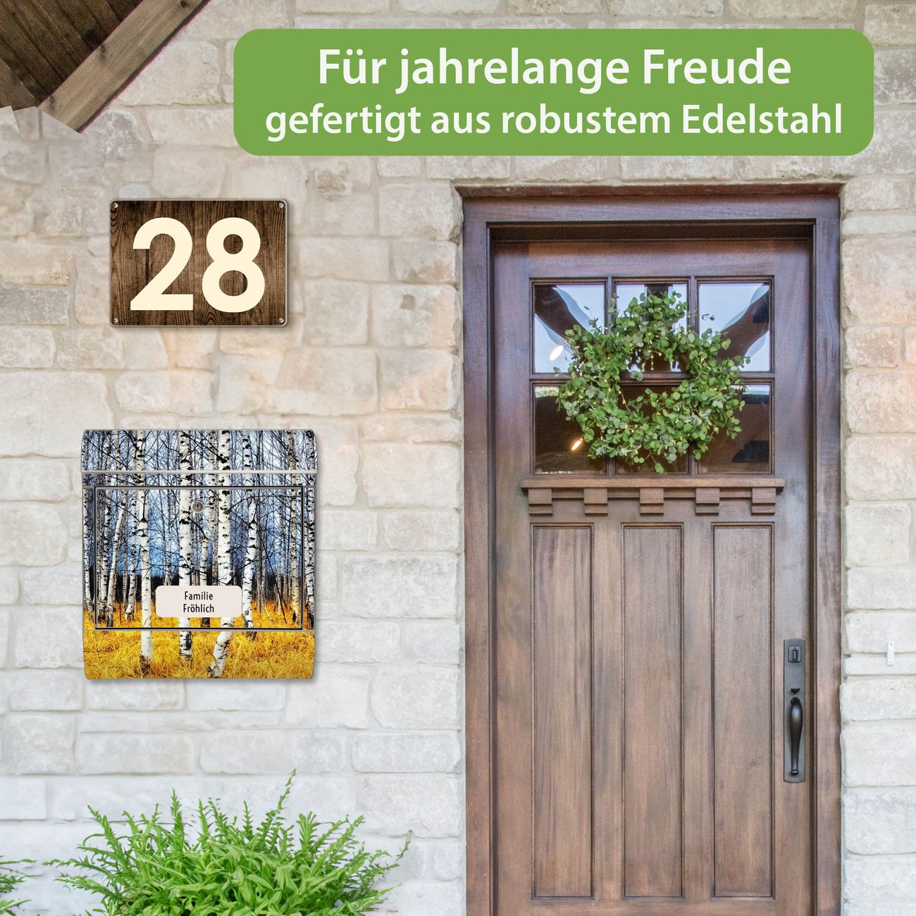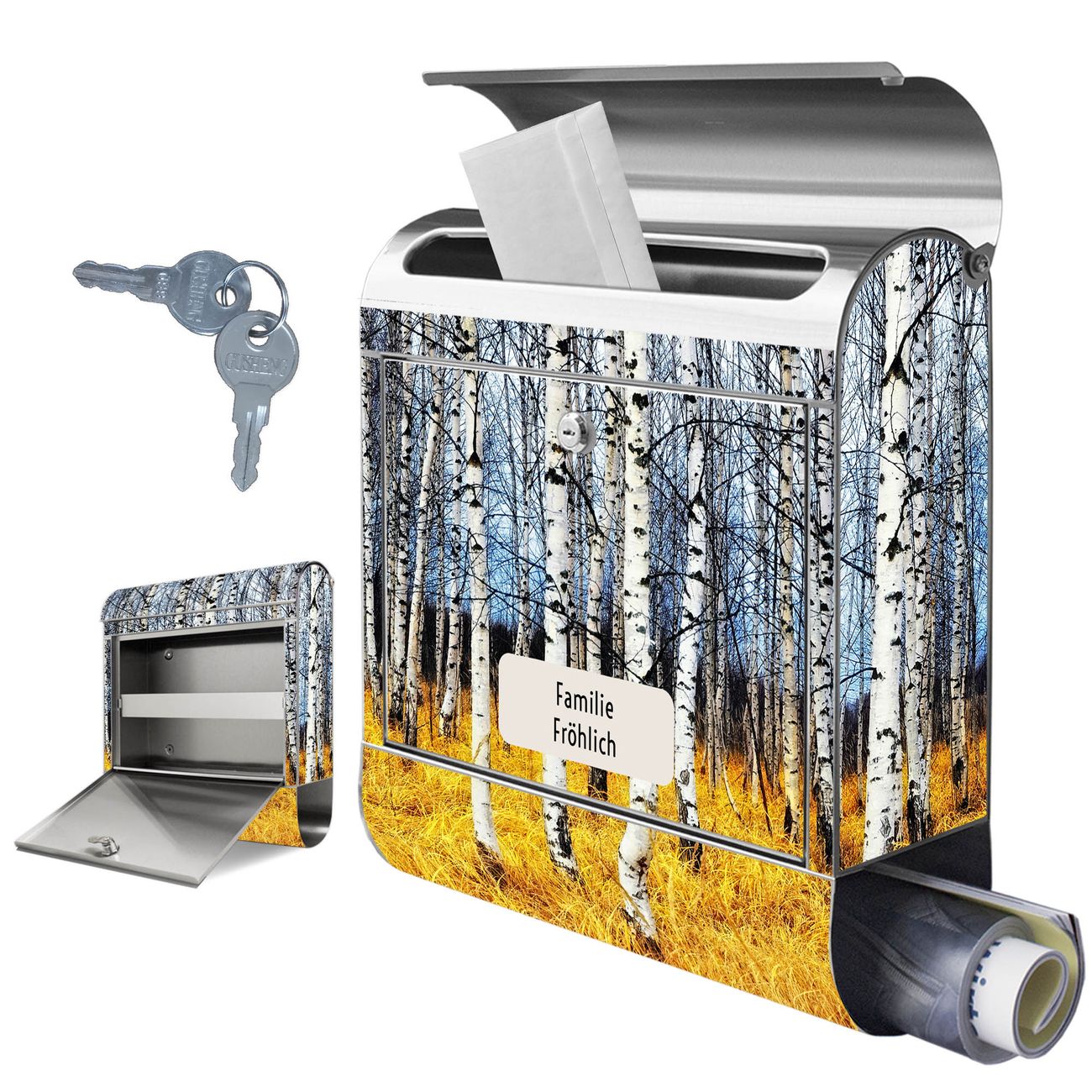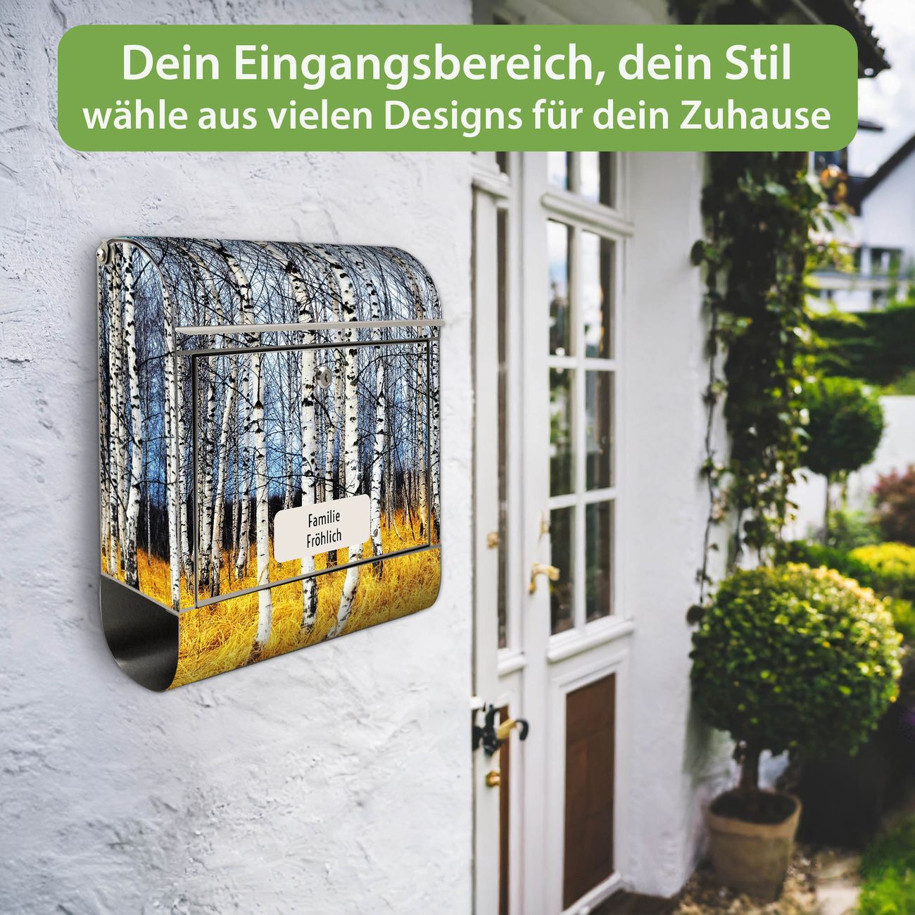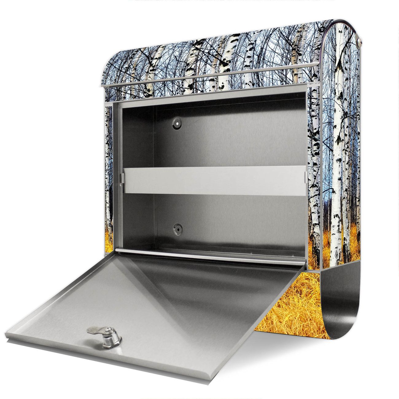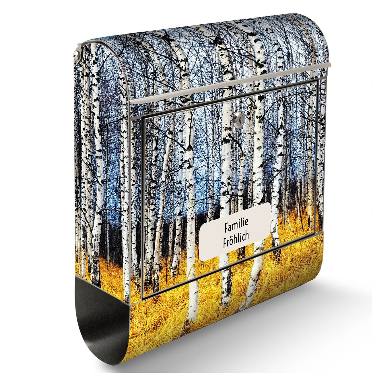 Wandbriefkasten Edelstahl Motiv Birkenhain