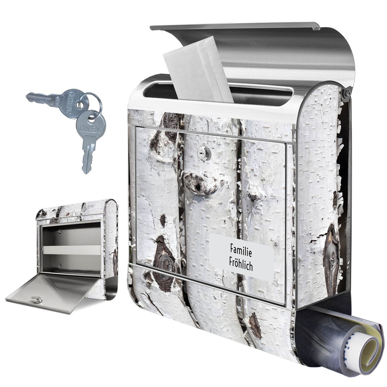 Wandbriefkasten Edelstahl Motiv Birkenrinde
