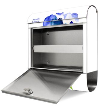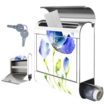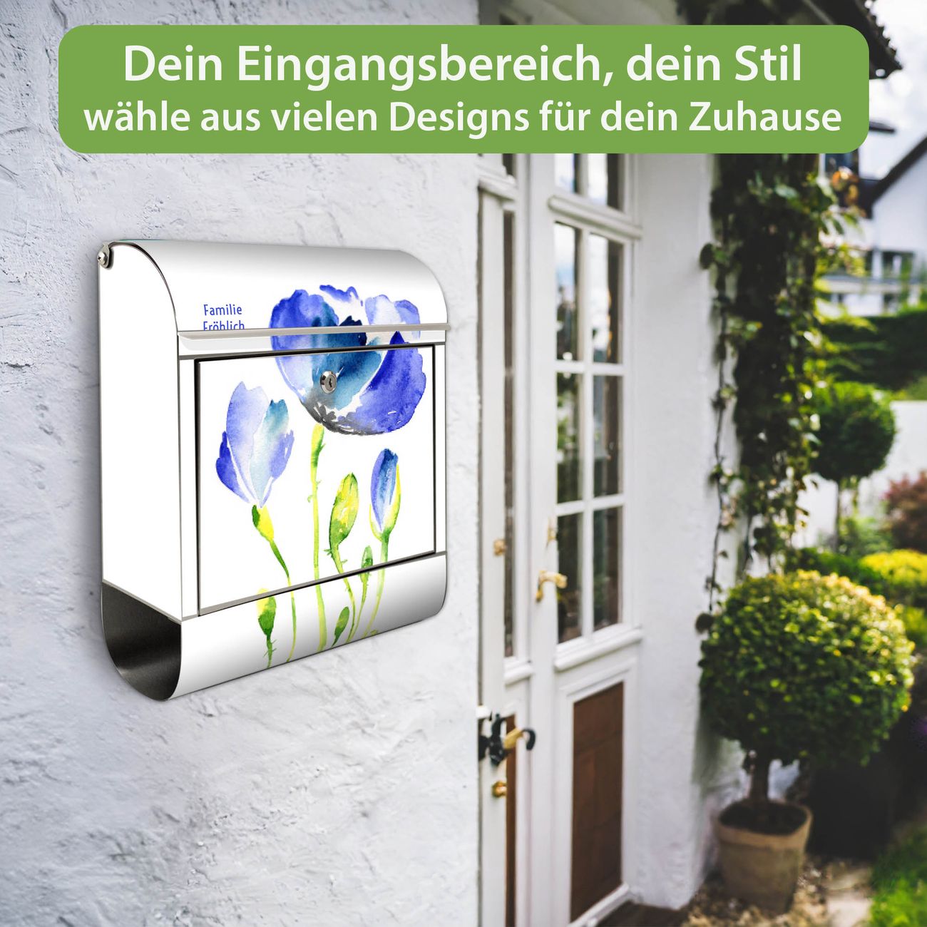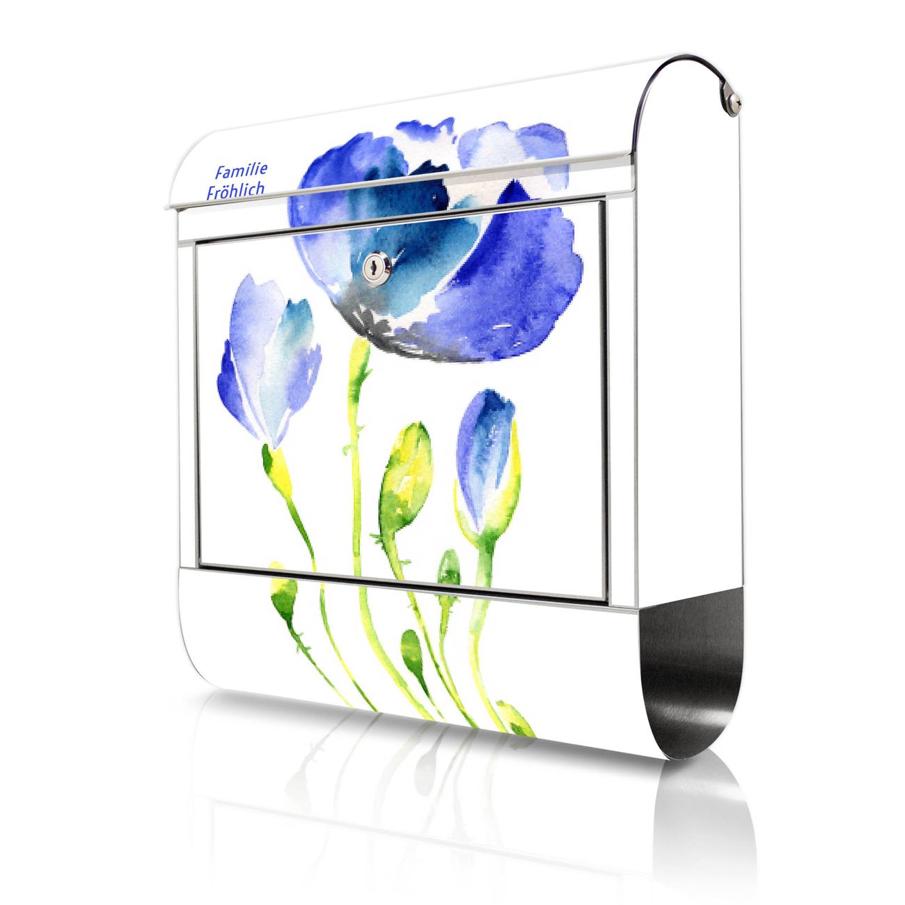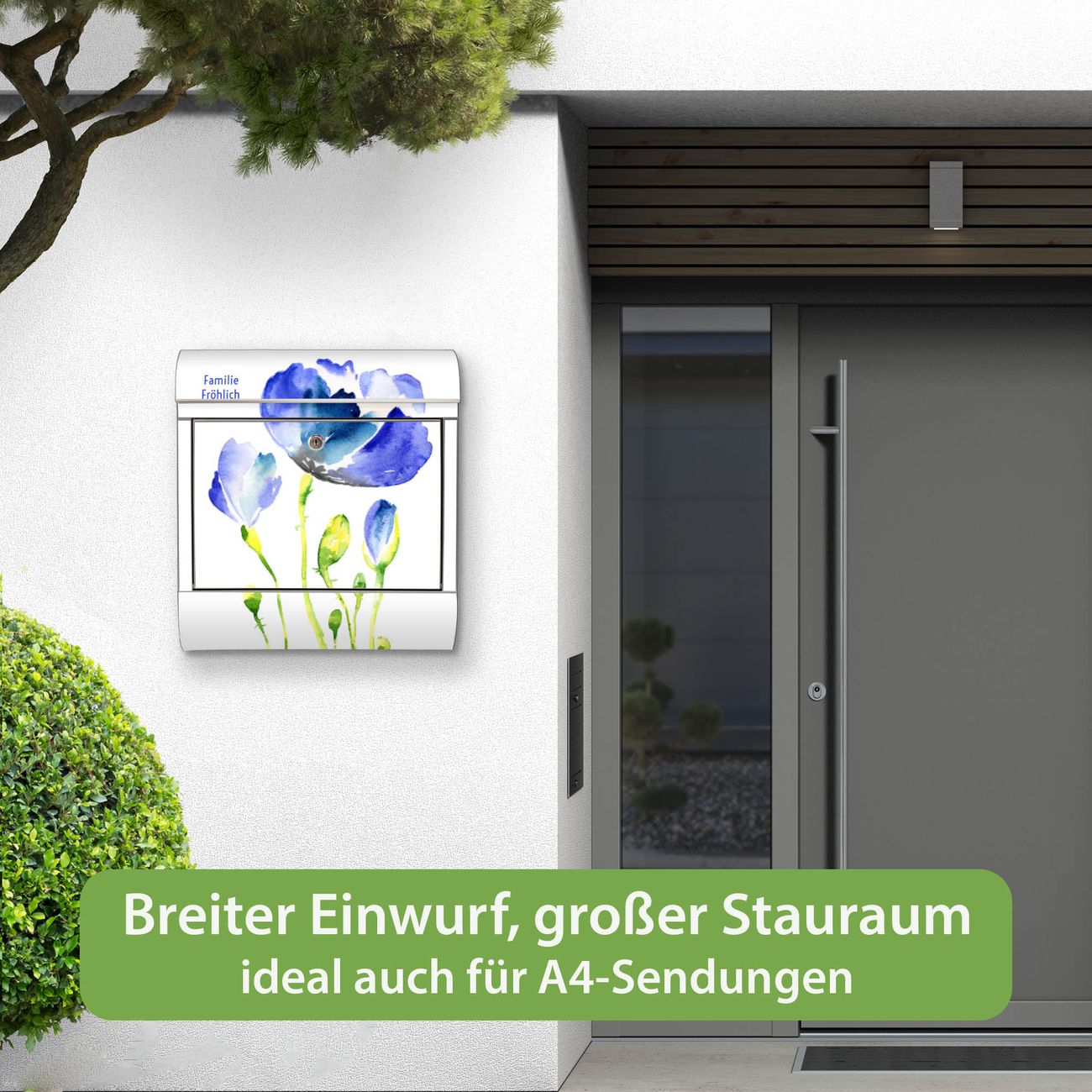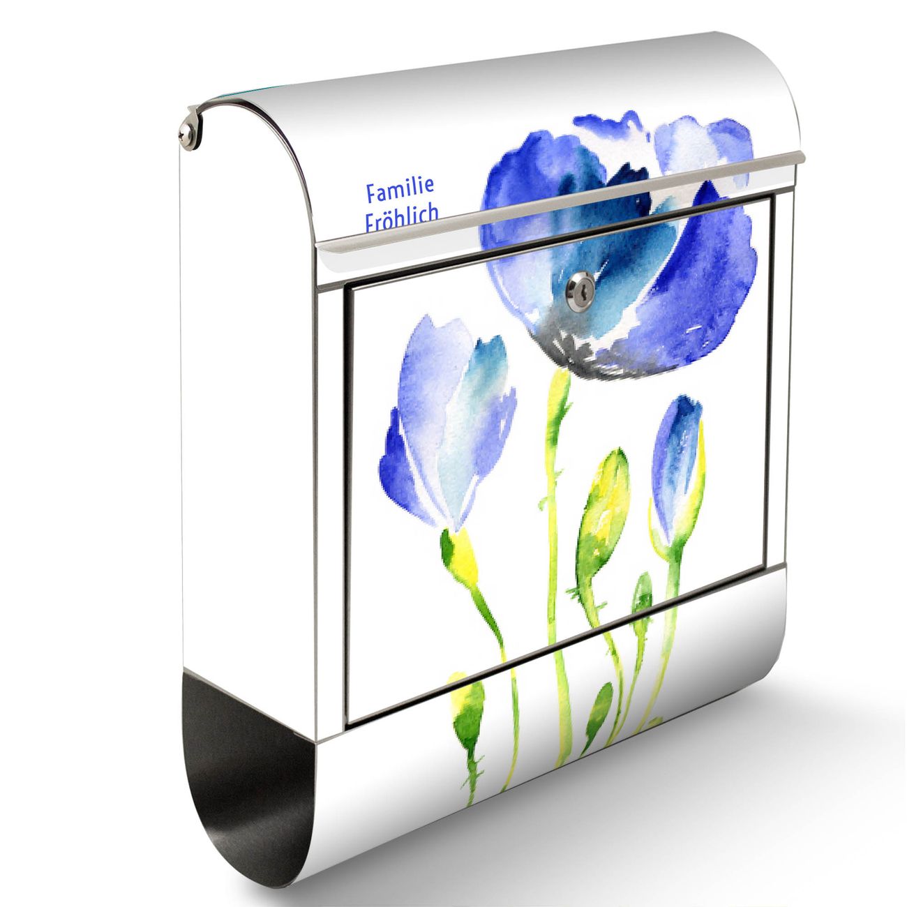 Wandbriefkasten Edelstahl Motiv Blauer Mohn