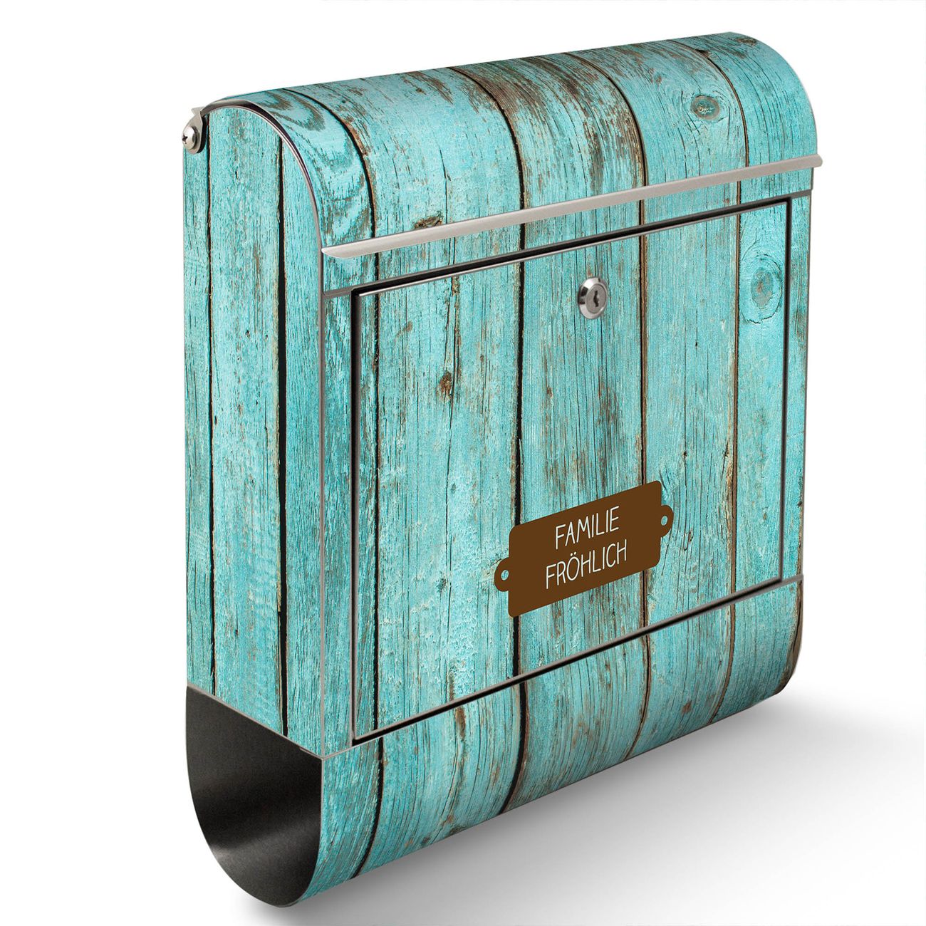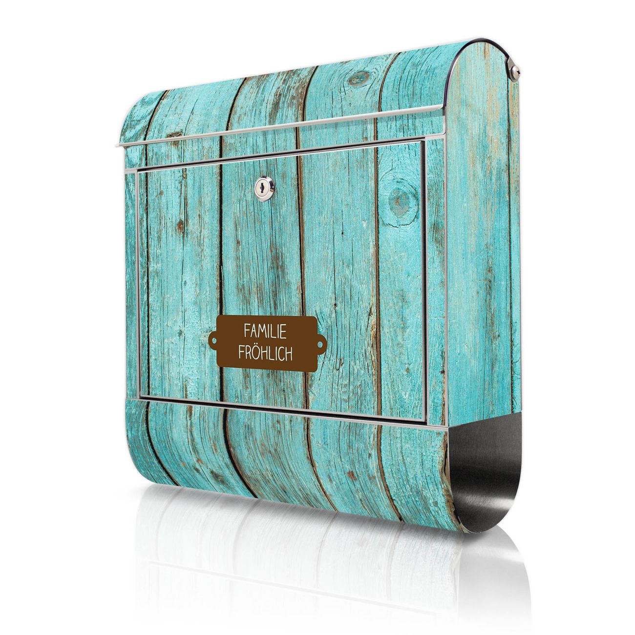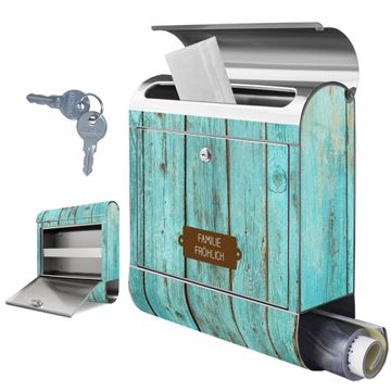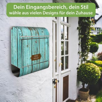 Wandbriefkasten Edelstahl Motiv Blaues Holz