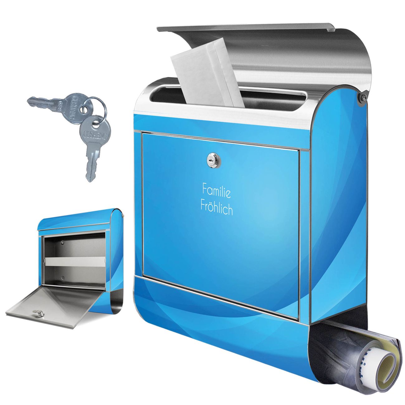 Wandbriefkasten Edelstahl Motiv Blaues Licht