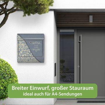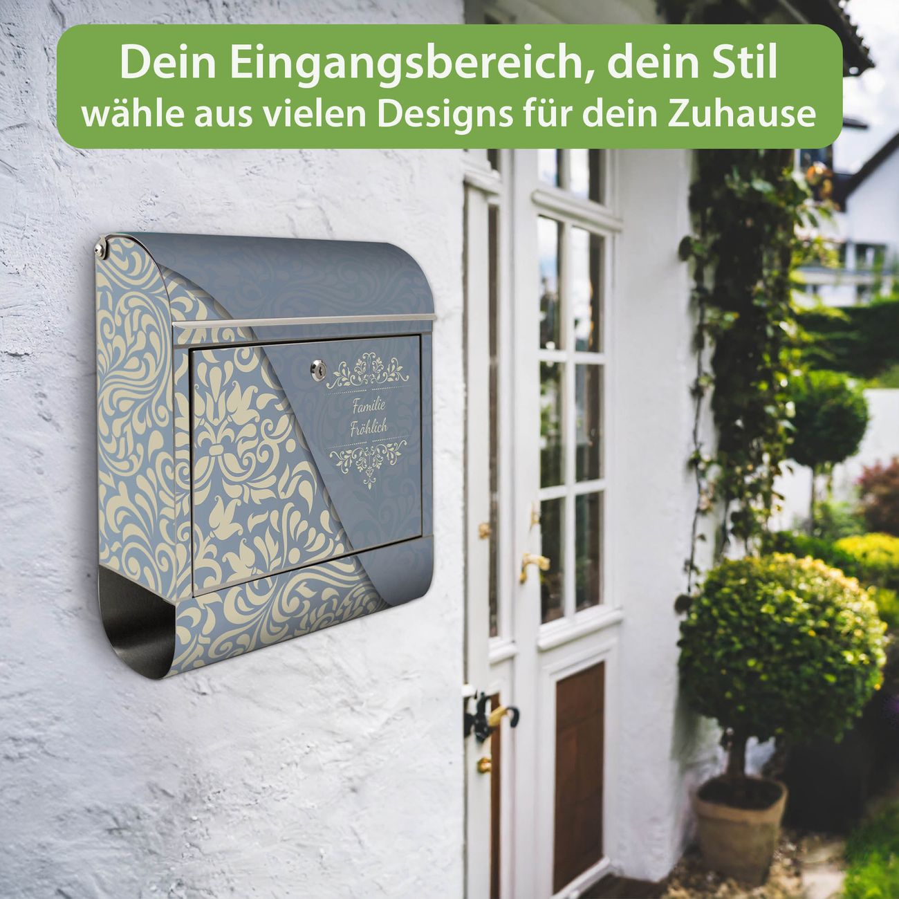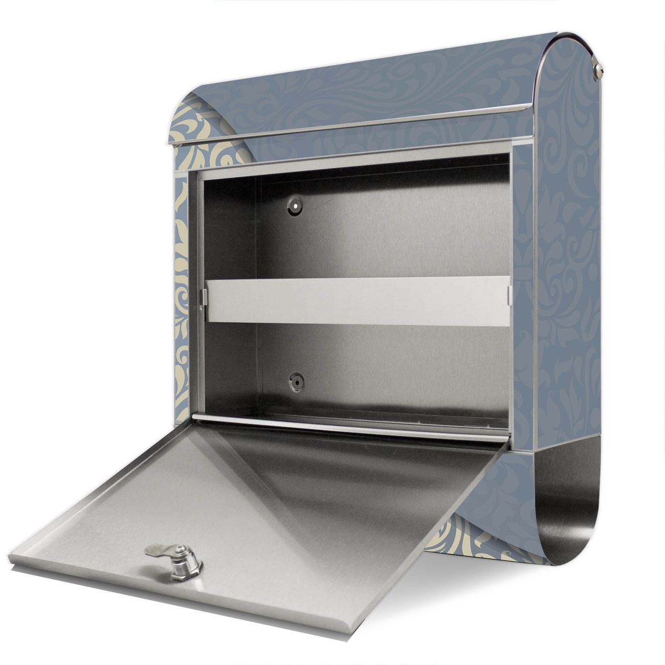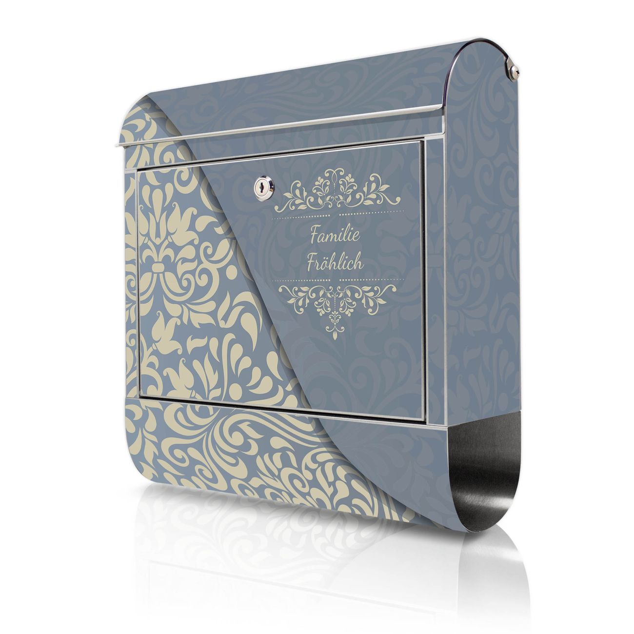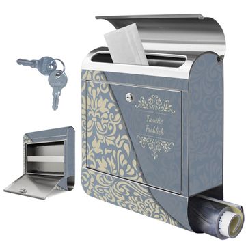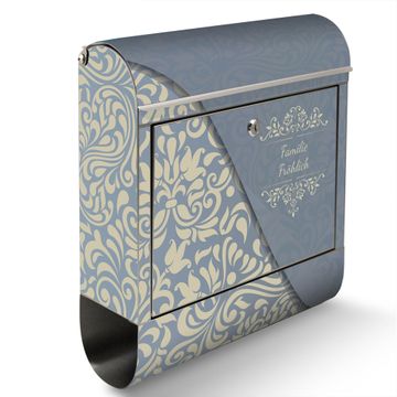 Wandbriefkasten Edelstahl Motiv Blaues Ornament
