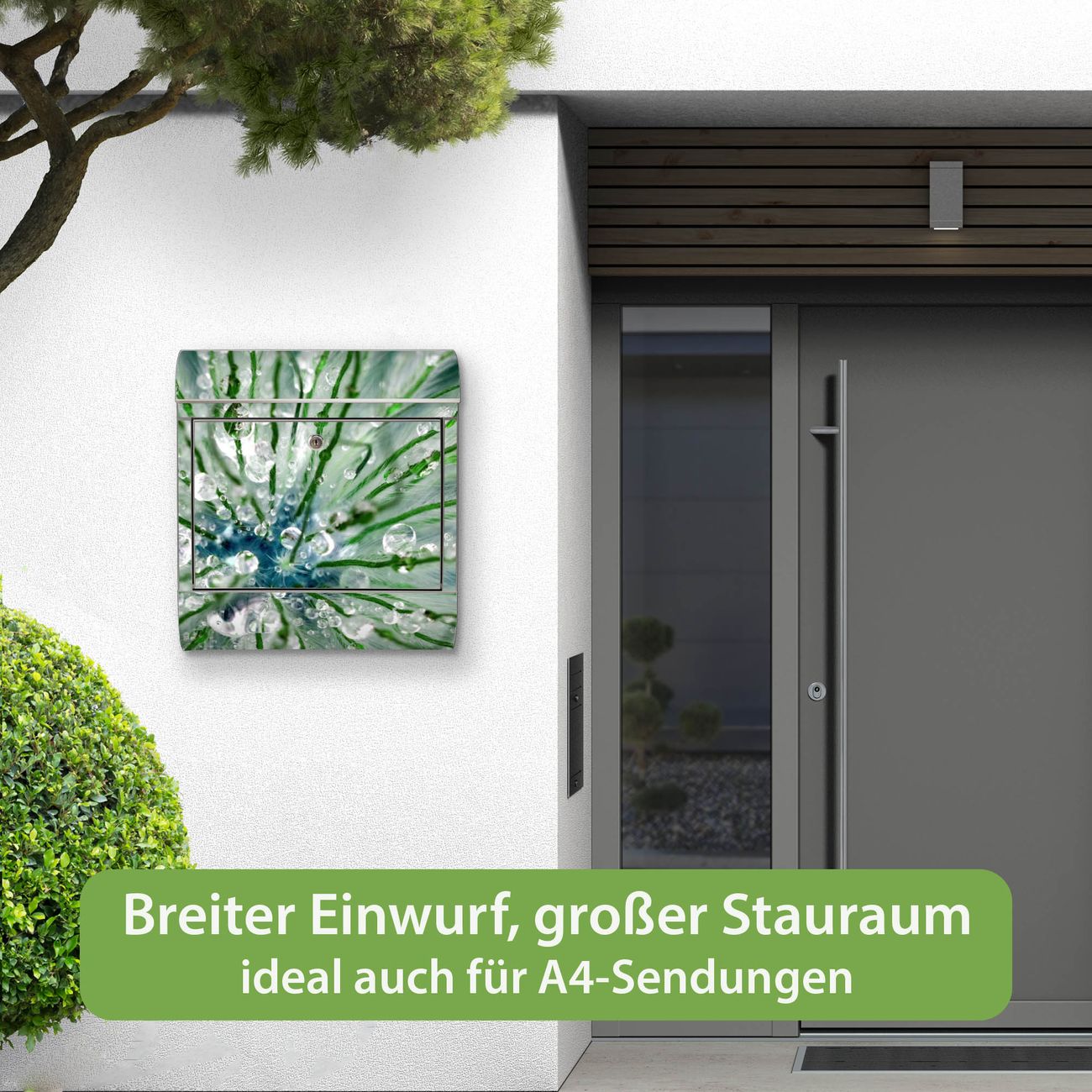 Wandbriefkasten Edelstahl Motiv Blüte Mit Tautropfen