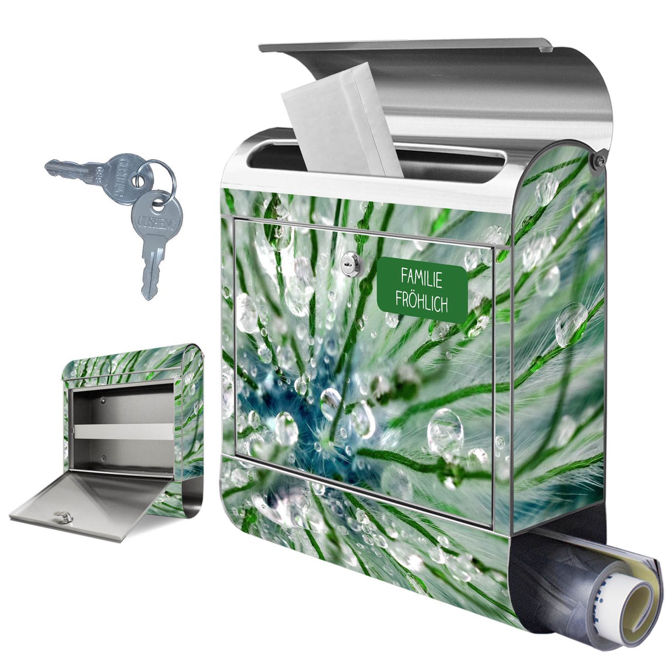 Wandbriefkasten Edelstahl Motiv Blüte Mit Tautropfen