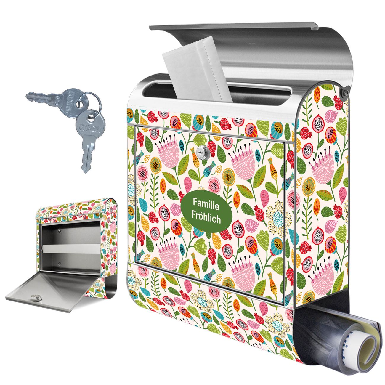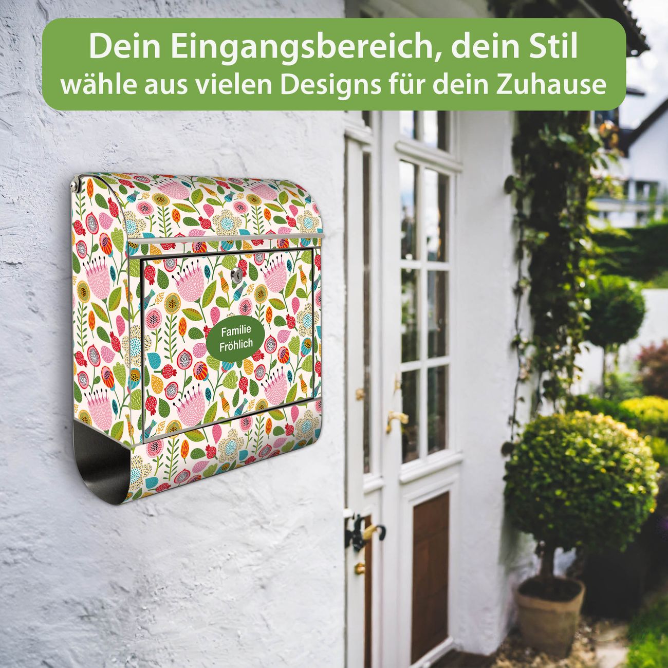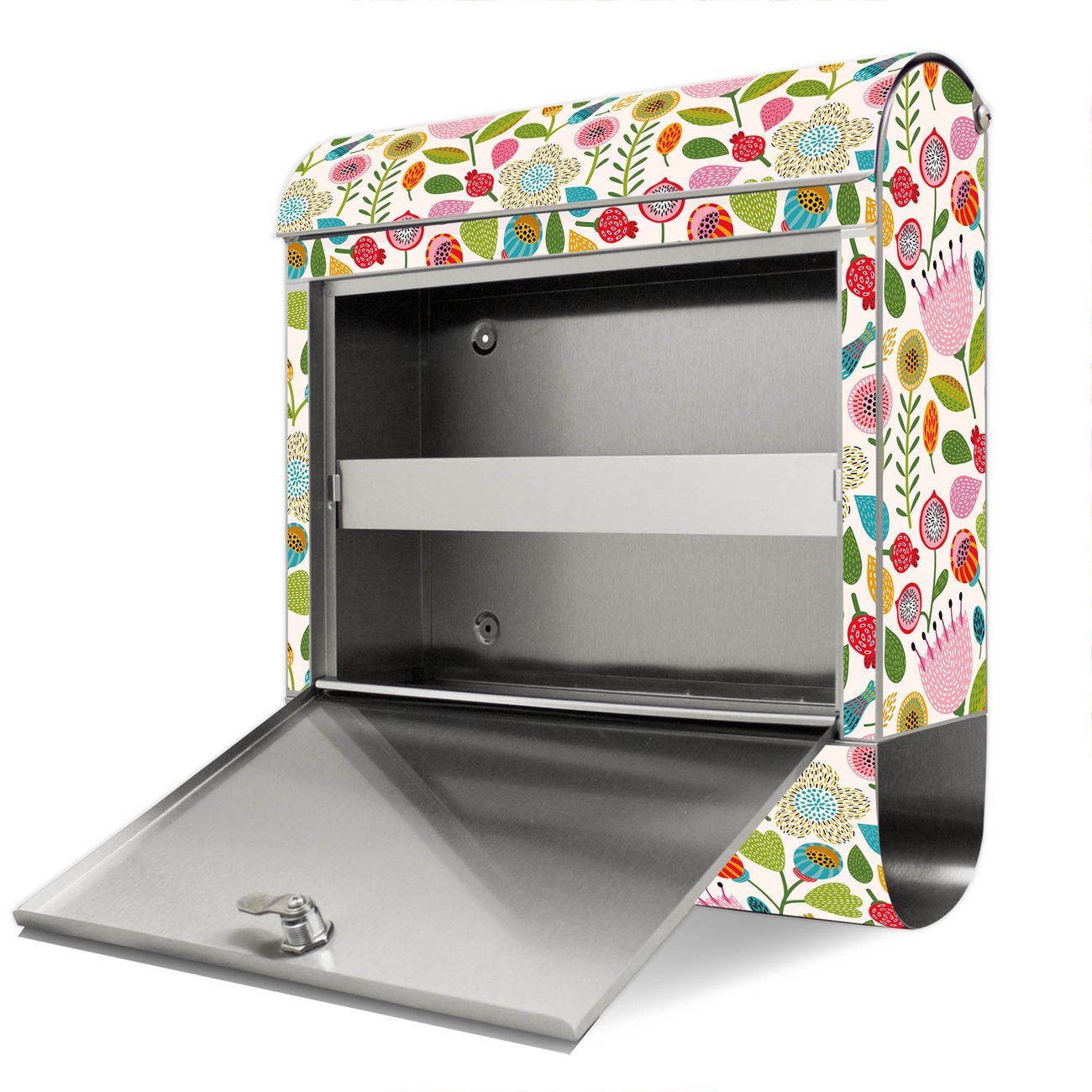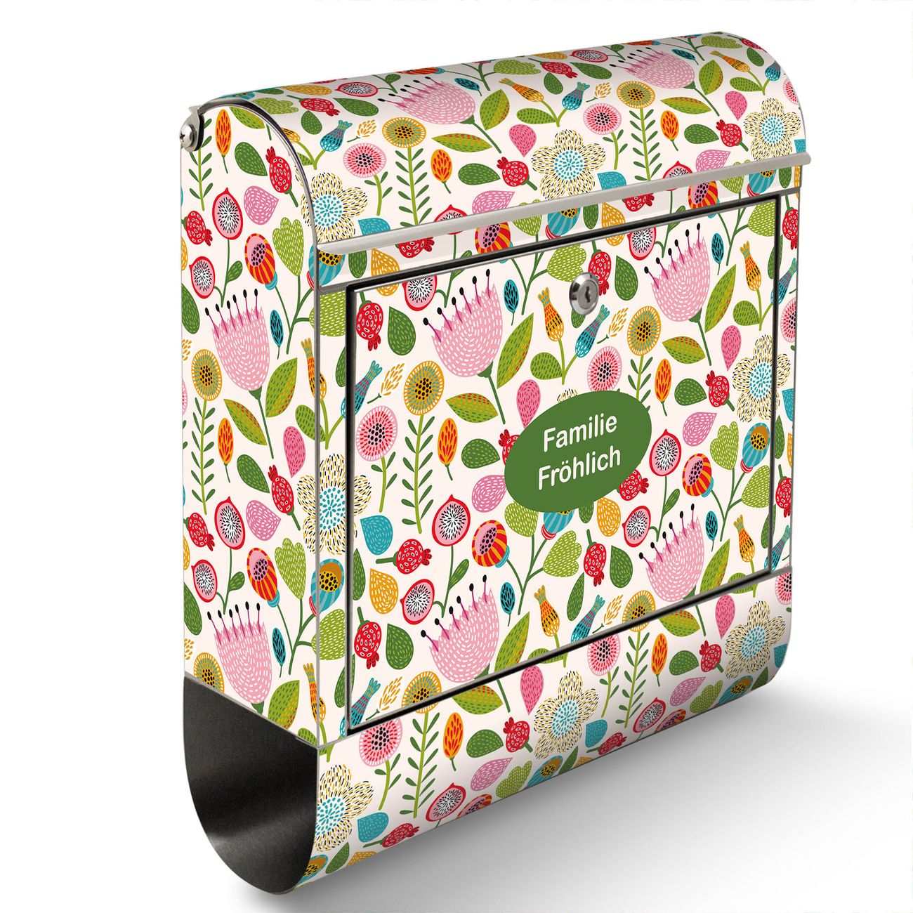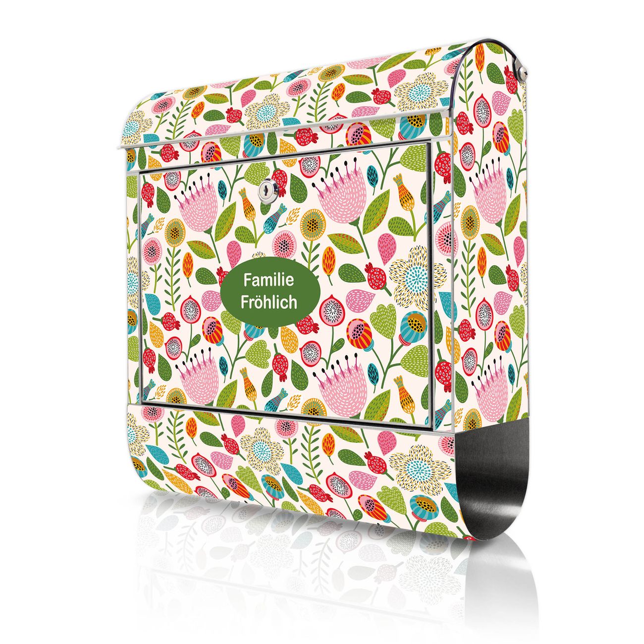 Wandbriefkasten Edelstahl Motiv Blumen Naiv