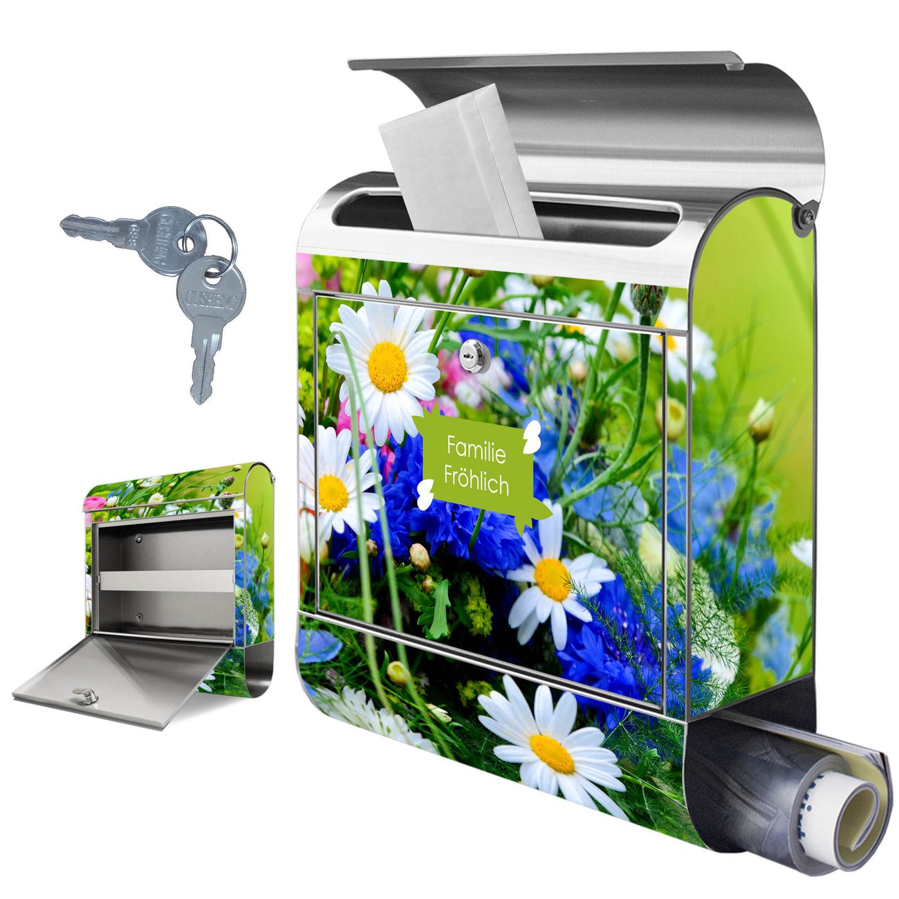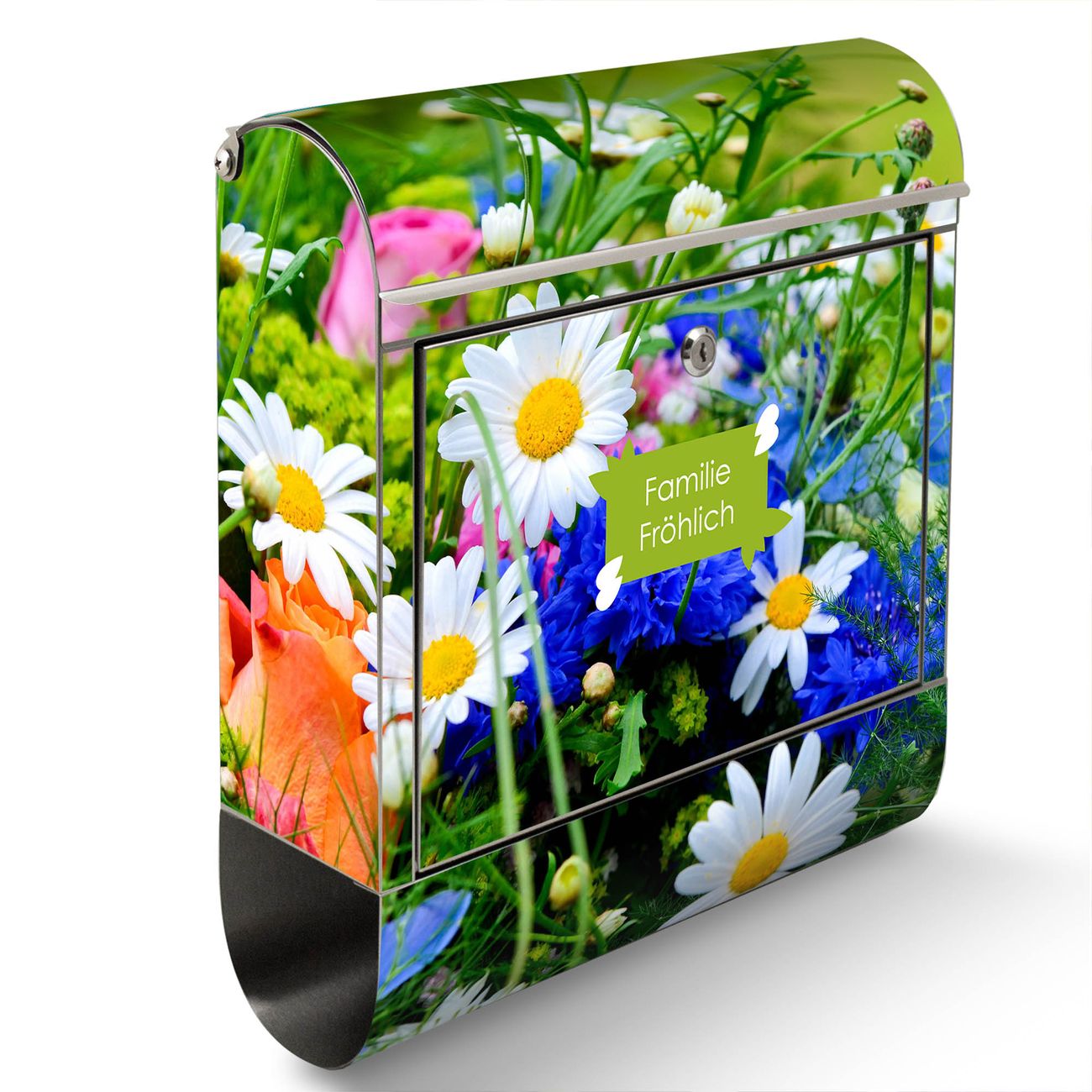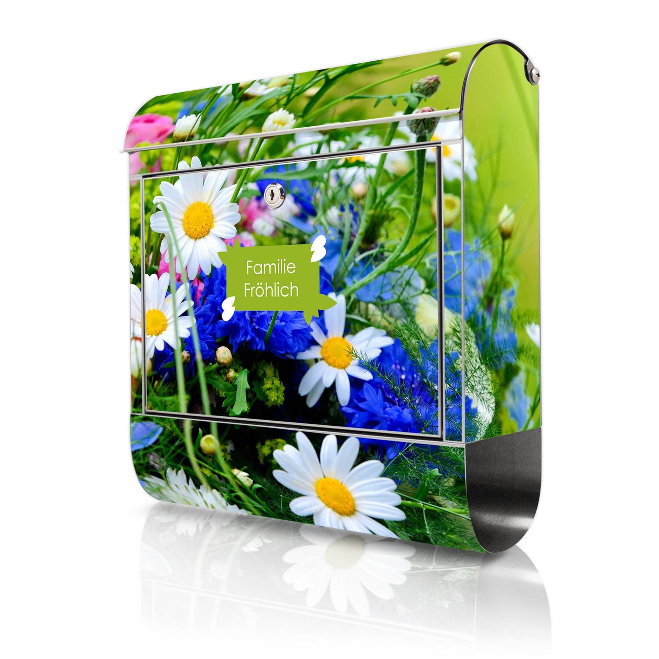Wandbriefkasten Edelstahl Motiv Blumenstrauß
