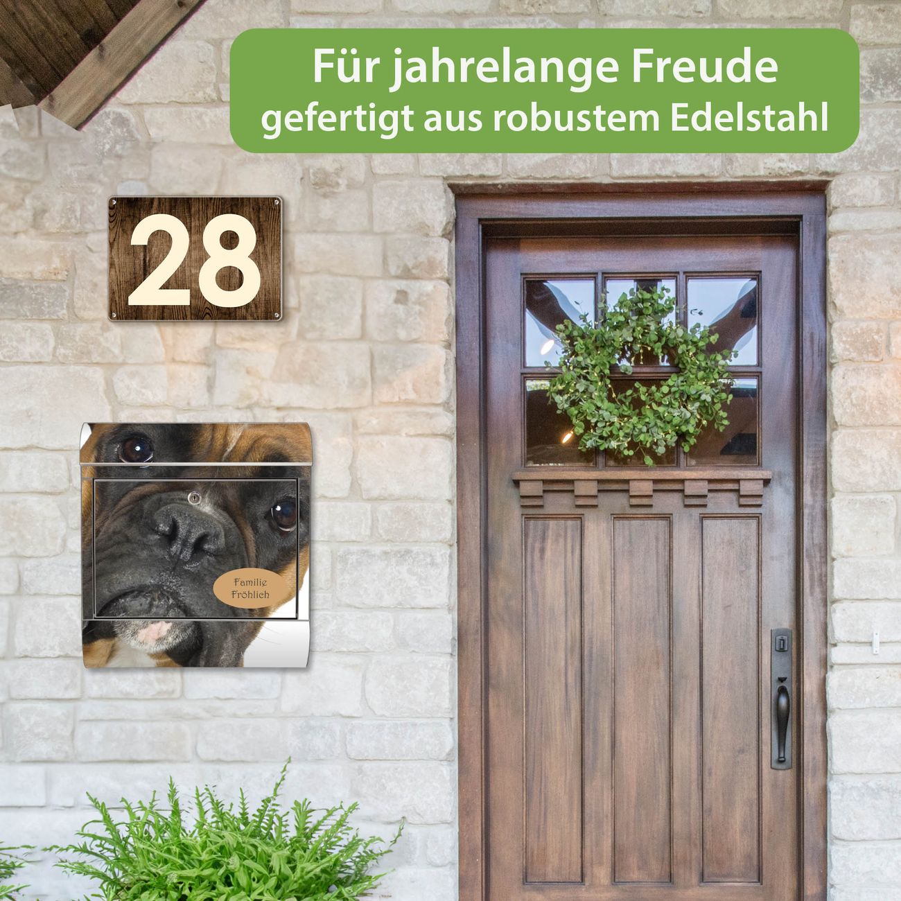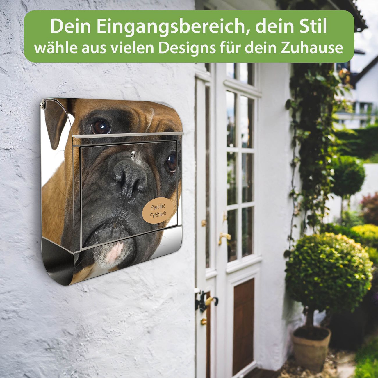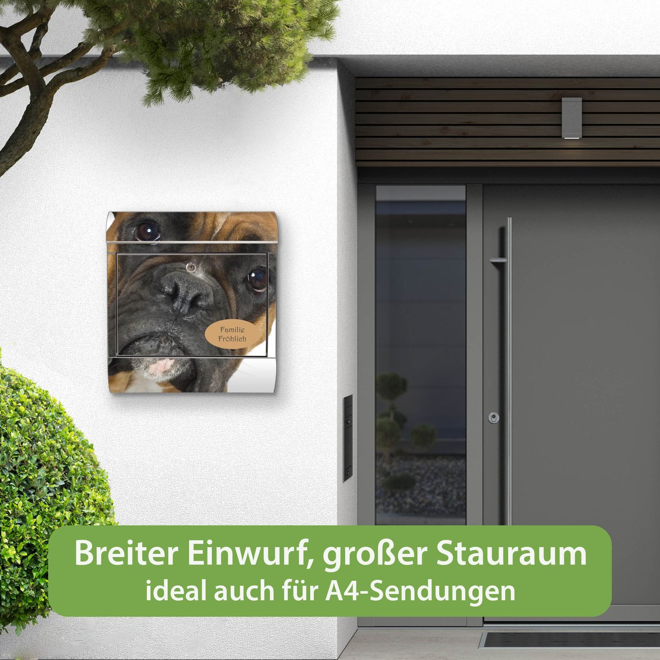 Wandbriefkasten Edelstahl Motiv Boxer