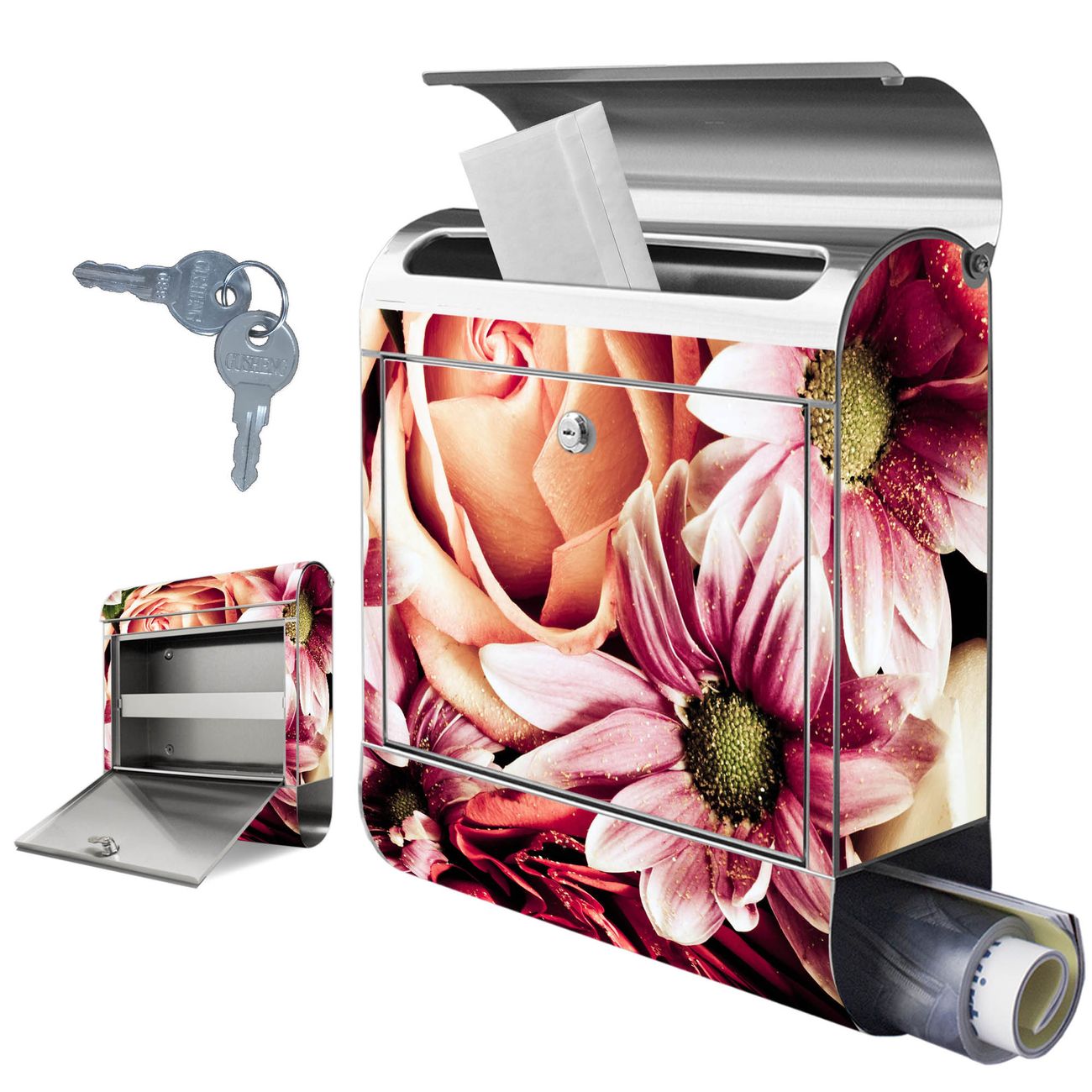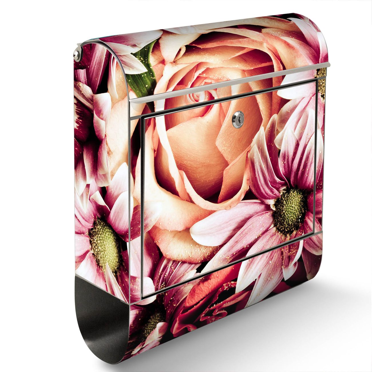 Wandbriefkasten Edelstahl Motiv Brautstrauss