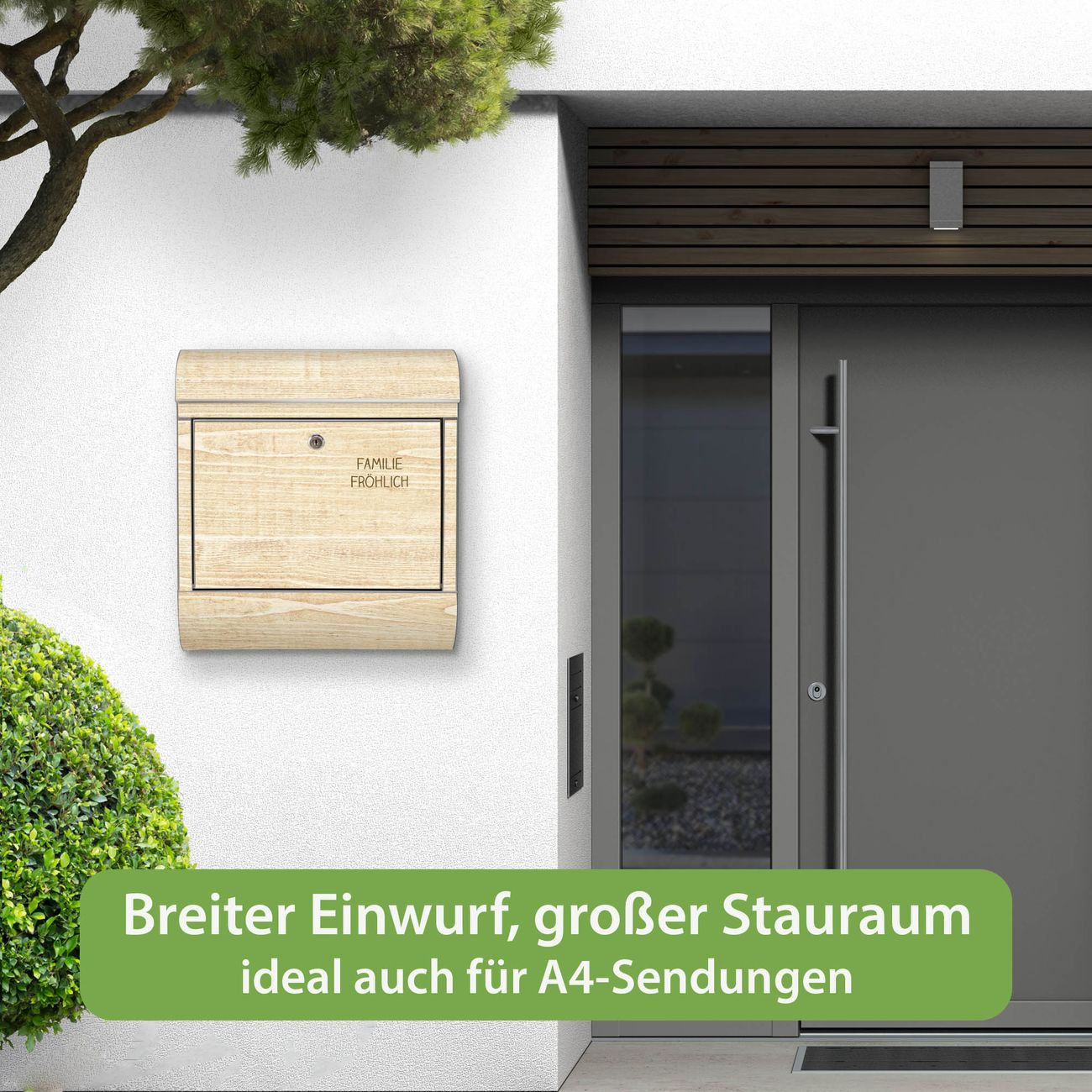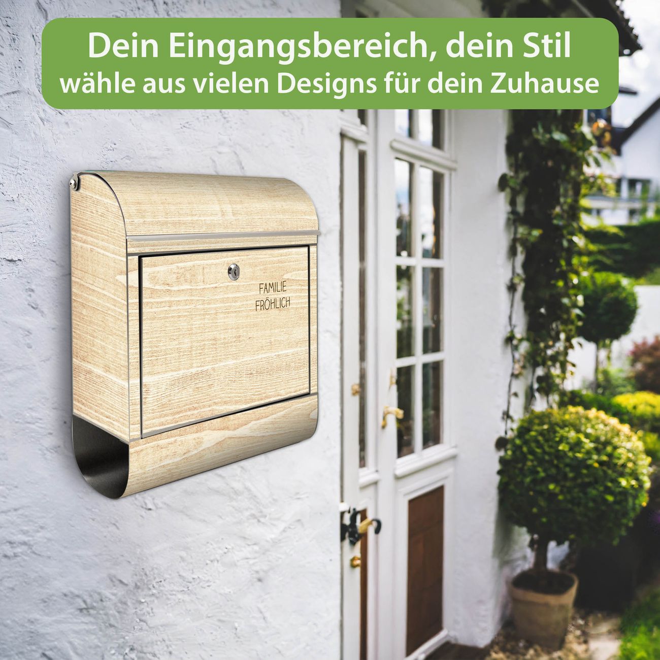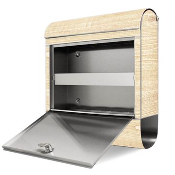 FUNKTION: Der banjado Edelstahl Briefkasten mit Motiv Motiv Bretter bietet Ihnen mit seinem Fassungsvermögen genügend Platz auch für große A4 Sendungen. Das integrierte Zeitungsfach eignet sich hervorragend um unkompliziert die Tageszeitung zu fassen. Auf Wunsch können Sie bei uns den passenden Ständer kaufen und so aus dem Wandbriefkasten einen Standbriefkasten machen. DESIGN: Der Motivbriefkasten hat ein sehr ansprechendes und ausgefallenes Design, damit entlocken Sie Ihren Nachbarn und dem Postboten ein Lächeln. Heben Sie Sich ab von der tristen grauen Masse ohne auf Funktionalität zu verzichten. DETAILS: Der Design Briefkasten mit Motiv Motiv Bretter besteht aus hochwertigem 18/0 Edelstahl. Das Motiv besteht aus einer wetter- und UV-resistenten Folie, die mit einem Schutzlaminat überzogen ist. Der Briefkasten wird mit Montagematerial und zwei Schlüsseln geliefert. NUTZEN: Sie können diesen Briefkasten sowohl als Wandbriefkasten montieren oder einen passenden Ständer auswählen und als Standbriefkasten einbetonieren. Die Größe bietet genügend Platz für Sendungen aller Art, das hochwertige Edelstahl ist rostfrei und die Motivfolie absolut wetterfest. SCHUTZ: Um Ihre Post optimal vor Witterungseinflüssen wie Starkregen zu schützen, empfehlen wir, den Briefkasten geschützt anzubringen. BANJADO: Ihr Briefkasten wird in Sachsen in einer kleinen Manufaktur von Hand veredelt. Die Motivfolie ist lösungsmittelfrei und schutzlaminiert, dies sorgt für einen langen Halt. Wir legen großen Wert auf die Verbindung von Funktionalität und Design. Sie erhalten Handarbeit aus Sachsen.