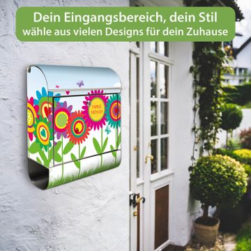 Wandbriefkasten Edelstahl Motiv Bunte Blumen