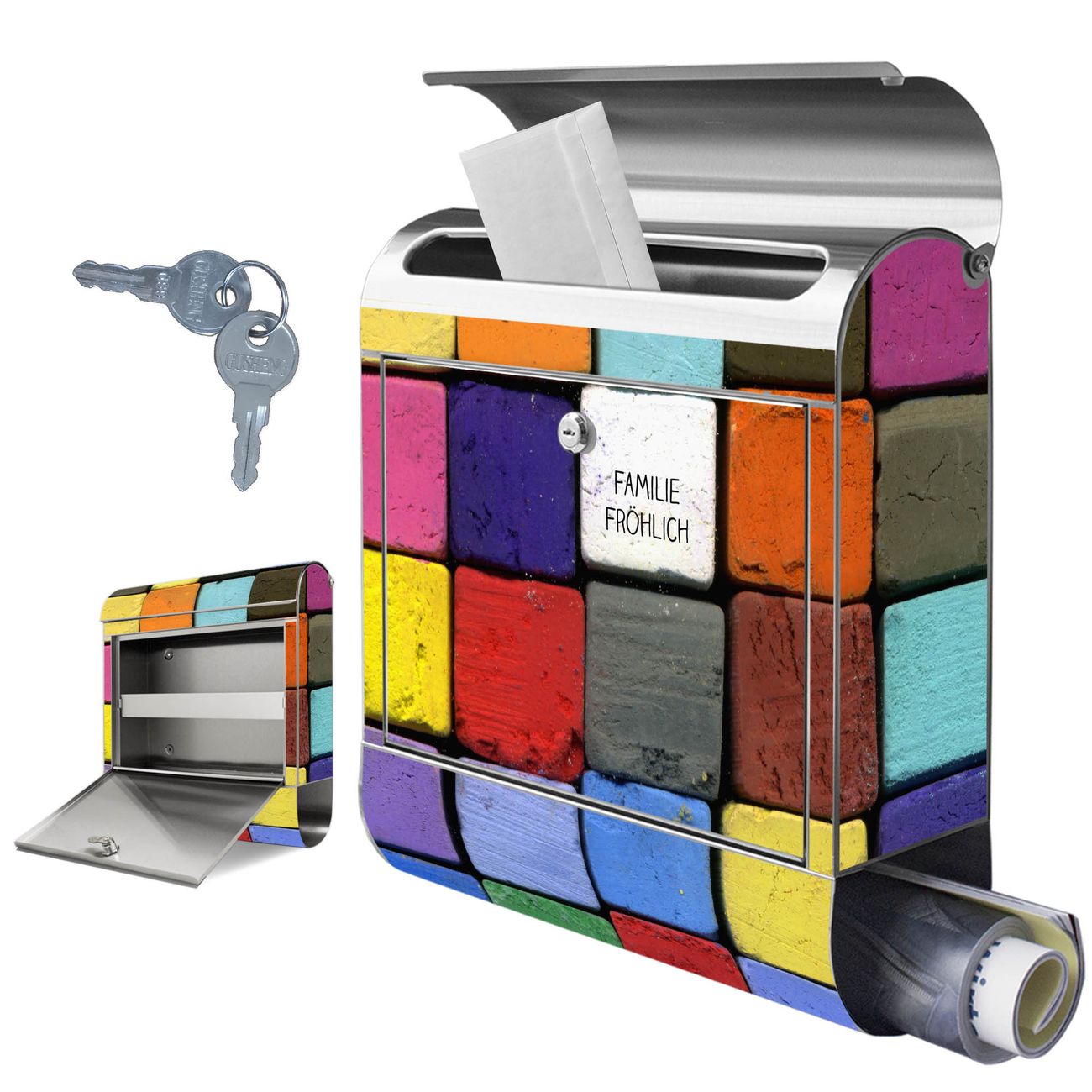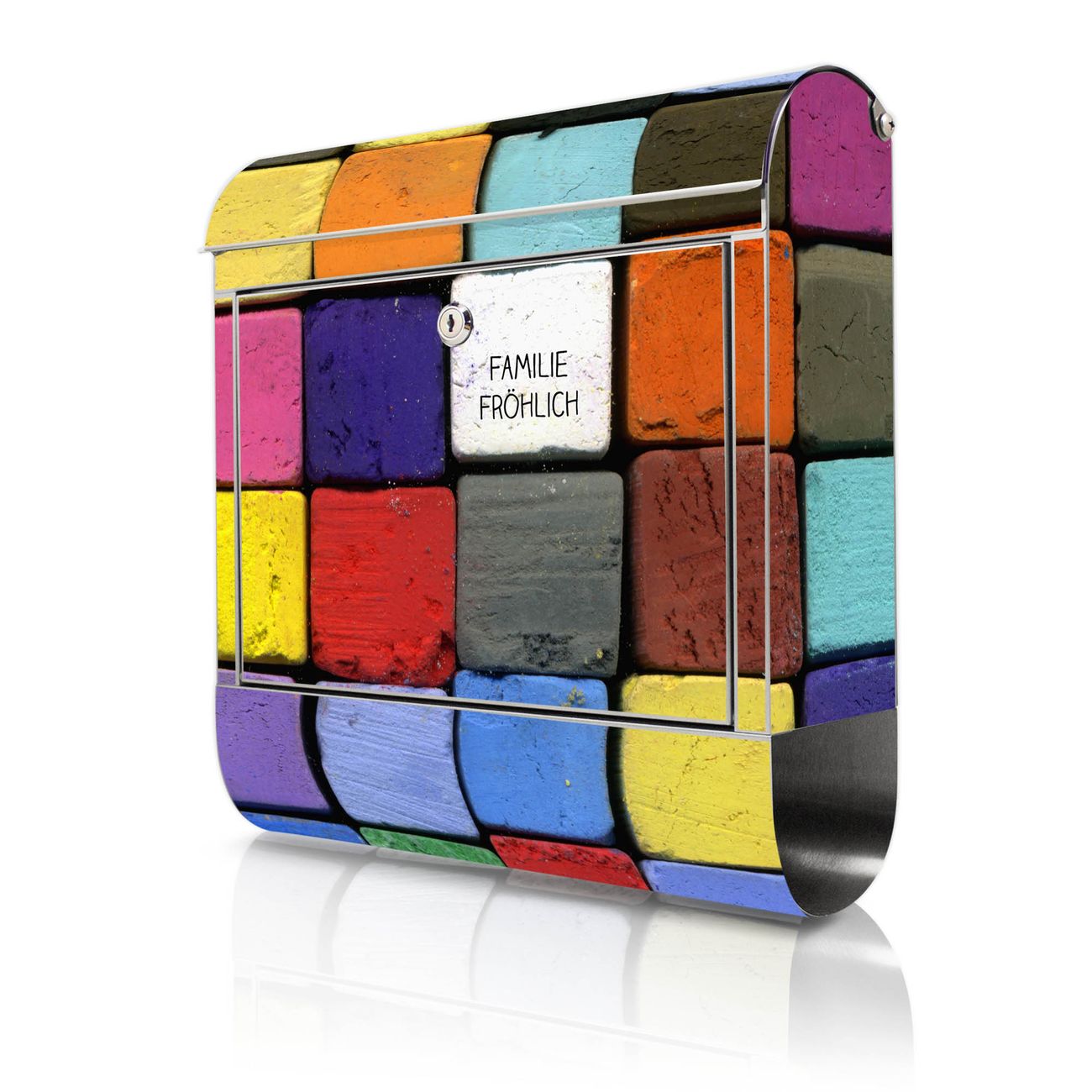 Wandbriefkasten Edelstahl Motiv Bunte Kreide
