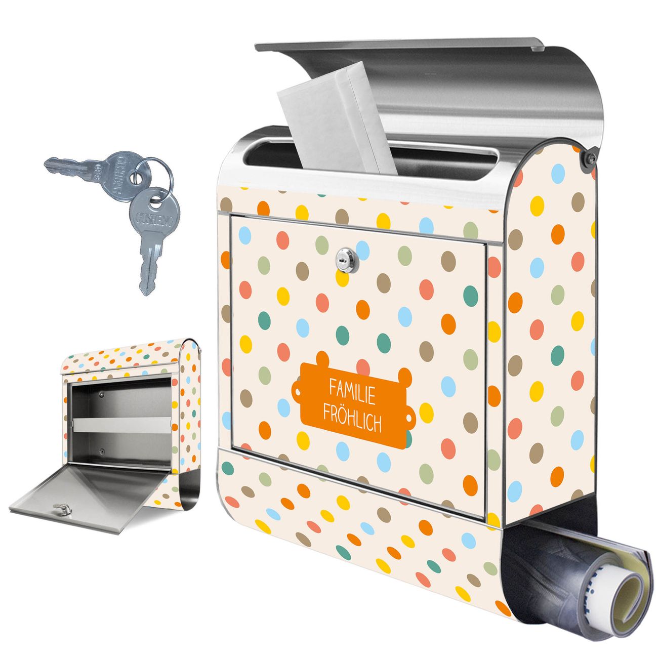 Wandbriefkasten Edelstahl Motiv Bunte Punkte