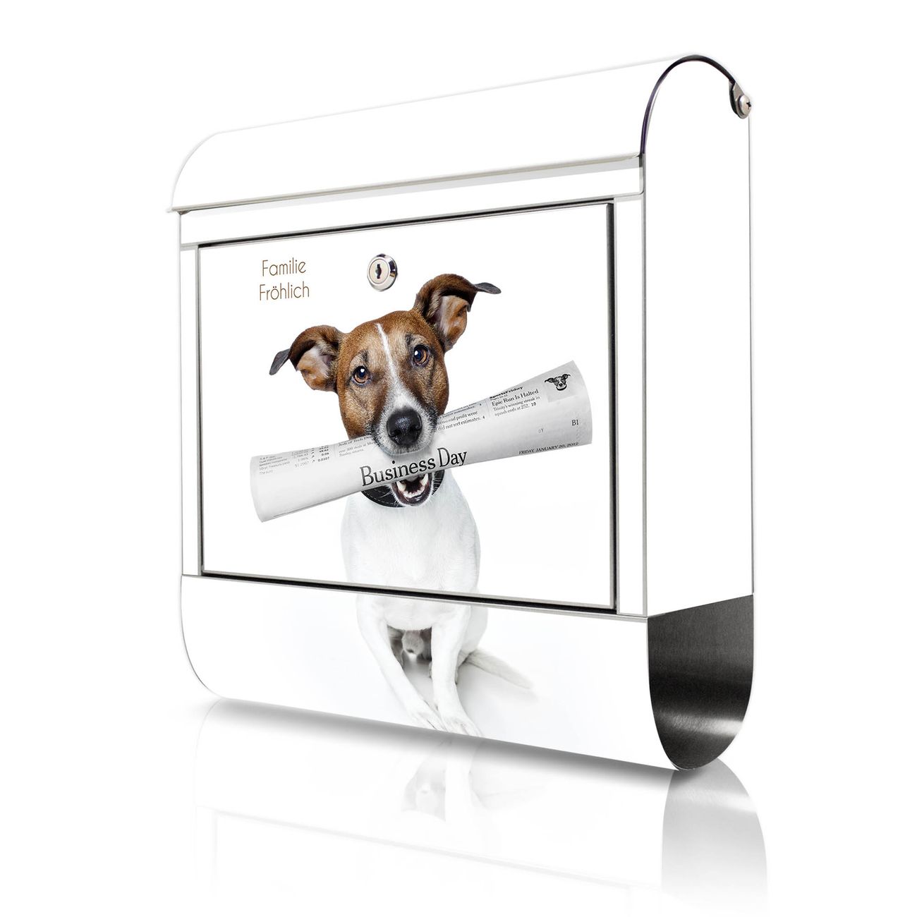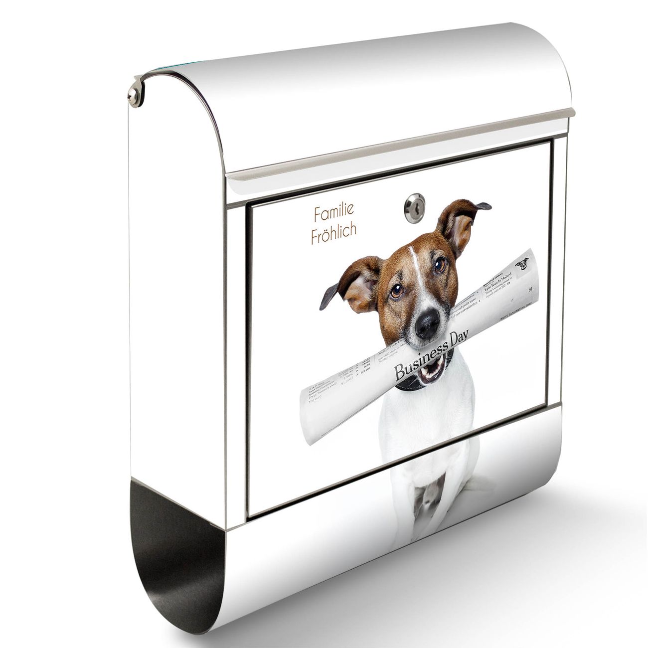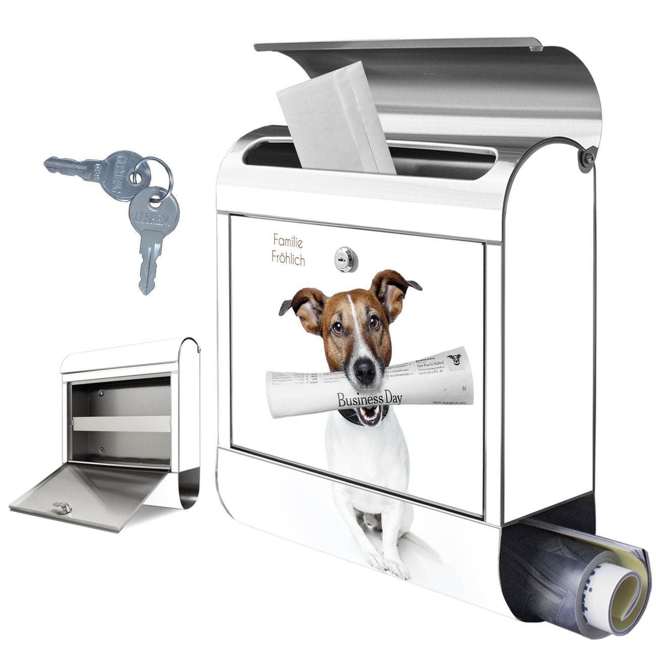 FUNKTION: Der banjado Edelstahl Briefkasten mit Motiv Motiv Business Day bietet Ihnen mit seinem Fassungsvermögen genügend Platz auch für große A4 Sendungen. Das integrierte Zeitungsfach eignet sich hervorragend um unkompliziert die Tageszeitung zu fassen. Auf Wunsch können Sie bei uns den passenden Ständer kaufen und so aus dem Wandbriefkasten einen Standbriefkasten machen. DESIGN: Der Motivbriefkasten hat ein sehr ansprechendes und ausgefallenes Design, damit entlocken Sie Ihren Nachbarn und dem Postboten ein Lächeln. Heben Sie Sich ab von der tristen grauen Masse ohne auf Funktionalität zu verzichten. DETAILS: Der Design Briefkasten mit Motiv Motiv Business Day besteht aus hochwertigem 18/0 Edelstahl. Das Motiv besteht aus einer wetter- und UV-resistenten Folie, die mit einem Schutzlaminat überzogen ist. Der Briefkasten wird mit Montagematerial und zwei Schlüsseln geliefert. NUTZEN: Sie können diesen Briefkasten sowohl als Wandbriefkasten montieren oder einen passenden Ständer auswählen und als Standbriefkasten einbetonieren. Die Größe bietet genügend Platz für Sendungen aller Art, das hochwertige Edelstahl ist rostfrei und die Motivfolie absolut wetterfest. SCHUTZ: Um Ihre Post optimal vor Witterungseinflüssen wie Starkregen zu schützen, empfehlen wir, den Briefkasten geschützt anzubringen. BANJADO: Ihr Briefkasten wird in Sachsen in einer kleinen Manufaktur von Hand veredelt. Die Motivfolie ist lösungsmittelfrei und schutzlaminiert, dies sorgt für einen langen Halt. Wir legen großen Wert auf die Verbindung von Funktionalität und Design. Sie erhalten Handarbeit aus Sachsen.