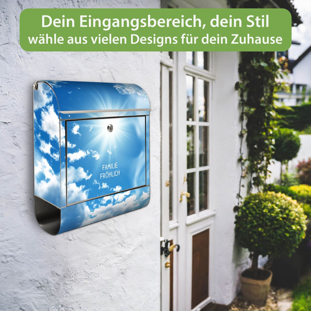 Wandbriefkasten Edelstahl Motiv Clouds