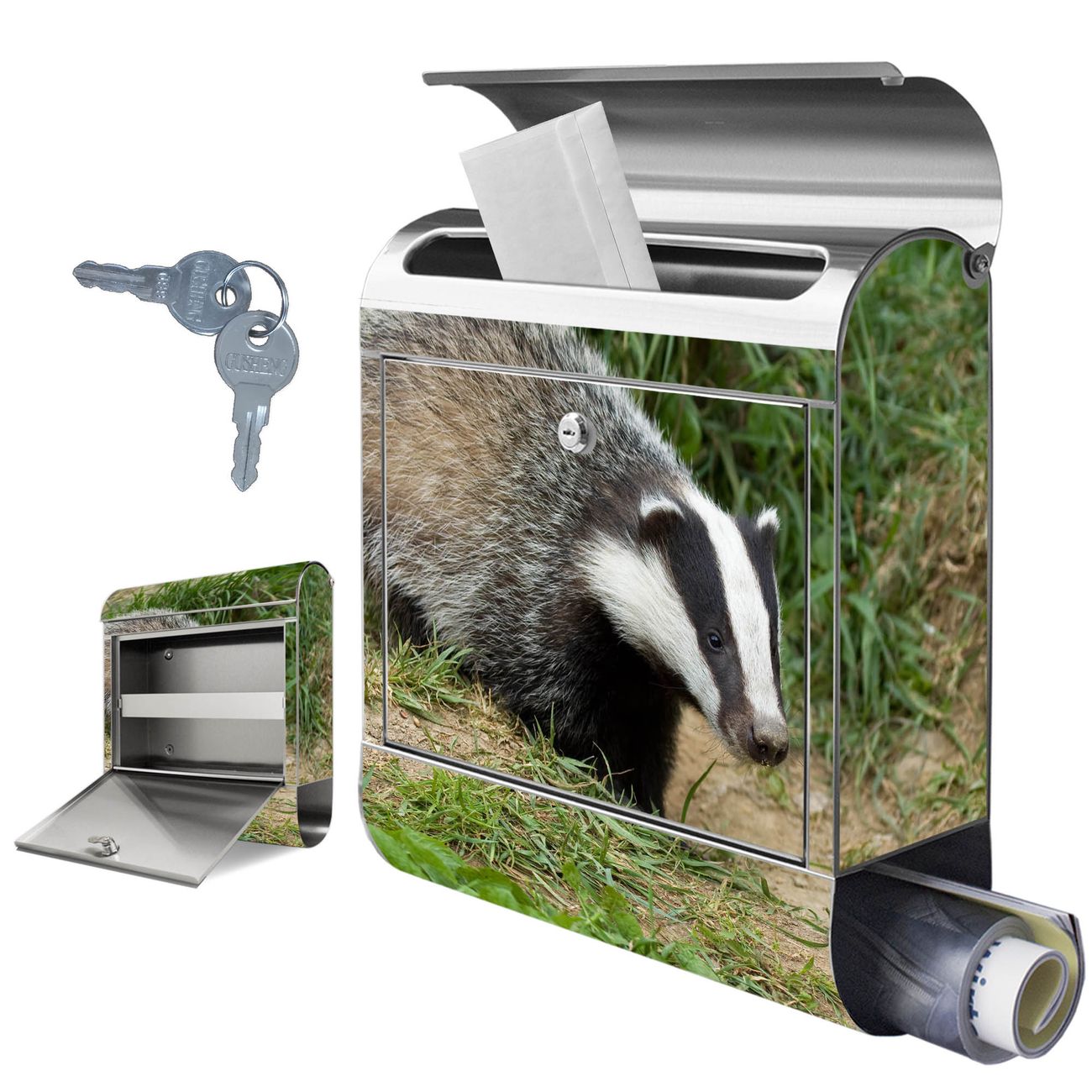 Wandbriefkasten Edelstahl Motiv Dachs