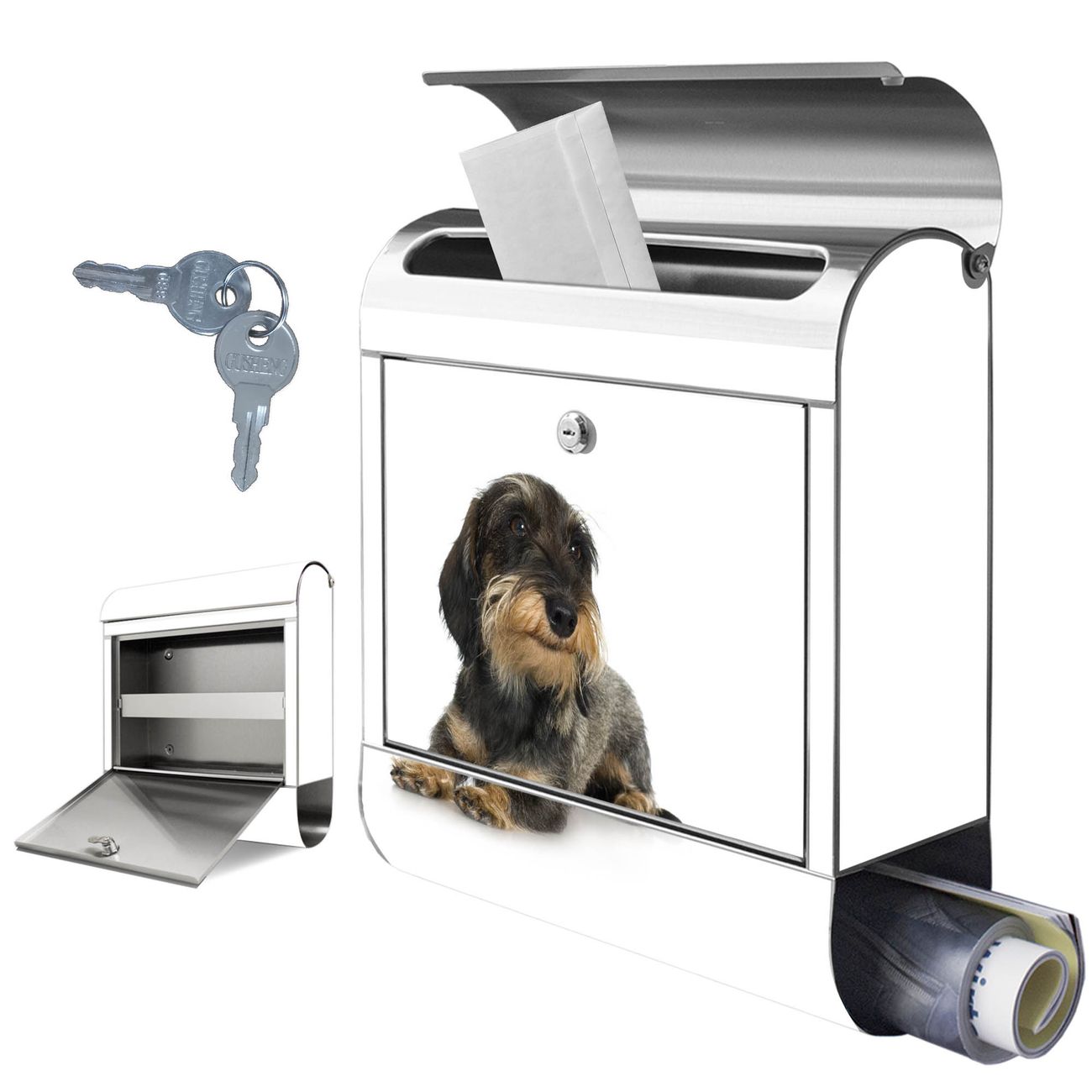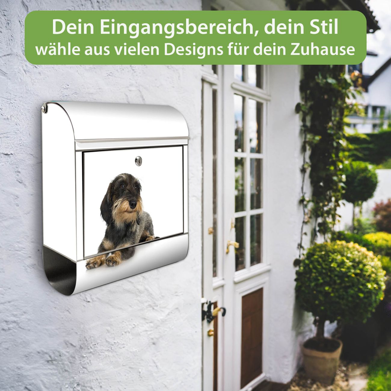 Wandbriefkasten Edelstahl Motiv Dackel