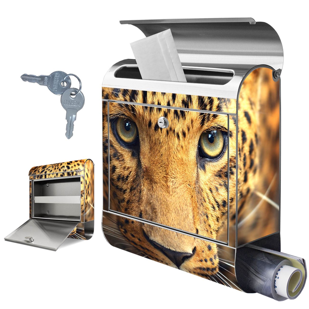 FUNKTION: Der banjado Edelstahl Briefkasten mit Motiv Motiv Daphne bietet Ihnen mit seinem Fassungsvermögen genügend Platz auch für große A4 Sendungen. Das integrierte Zeitungsfach eignet sich hervorragend um unkompliziert die Tageszeitung zu fassen. Auf Wunsch können Sie bei uns den passenden Ständer kaufen und so aus dem Wandbriefkasten einen Standbriefkasten machen. DESIGN: Der Motivbriefkasten hat ein sehr ansprechendes und ausgefallenes Design, damit entlocken Sie Ihren Nachbarn und dem Postboten ein Lächeln. Heben Sie Sich ab von der tristen grauen Masse ohne auf Funktionalität zu verzichten. DETAILS: Der Design Briefkasten mit Motiv Motiv Daphne besteht aus hochwertigem 18/0 Edelstahl. Das Motiv besteht aus einer wetter- und UV-resistenten Folie, die mit einem Schutzlaminat überzogen ist. Der Briefkasten wird mit Montagematerial und zwei Schlüsseln geliefert. NUTZEN: Sie können diesen Briefkasten sowohl als Wandbriefkasten montieren oder einen passenden Ständer auswählen und als Standbriefkasten einbetonieren. Die Größe bietet genügend Platz für Sendungen aller Art, das hochwertige Edelstahl ist rostfrei und die Motivfolie absolut wetterfest. SCHUTZ: Um Ihre Post optimal vor Witterungseinflüssen wie Starkregen zu schützen, empfehlen wir, den Briefkasten geschützt anzubringen. BANJADO: Ihr Briefkasten wird in Sachsen in einer kleinen Manufaktur von Hand veredelt. Die Motivfolie ist lösungsmittelfrei und schutzlaminiert, dies sorgt für einen langen Halt. Wir legen großen Wert auf die Verbindung von Funktionalität und Design. Sie erhalten Handarbeit aus Sachsen.