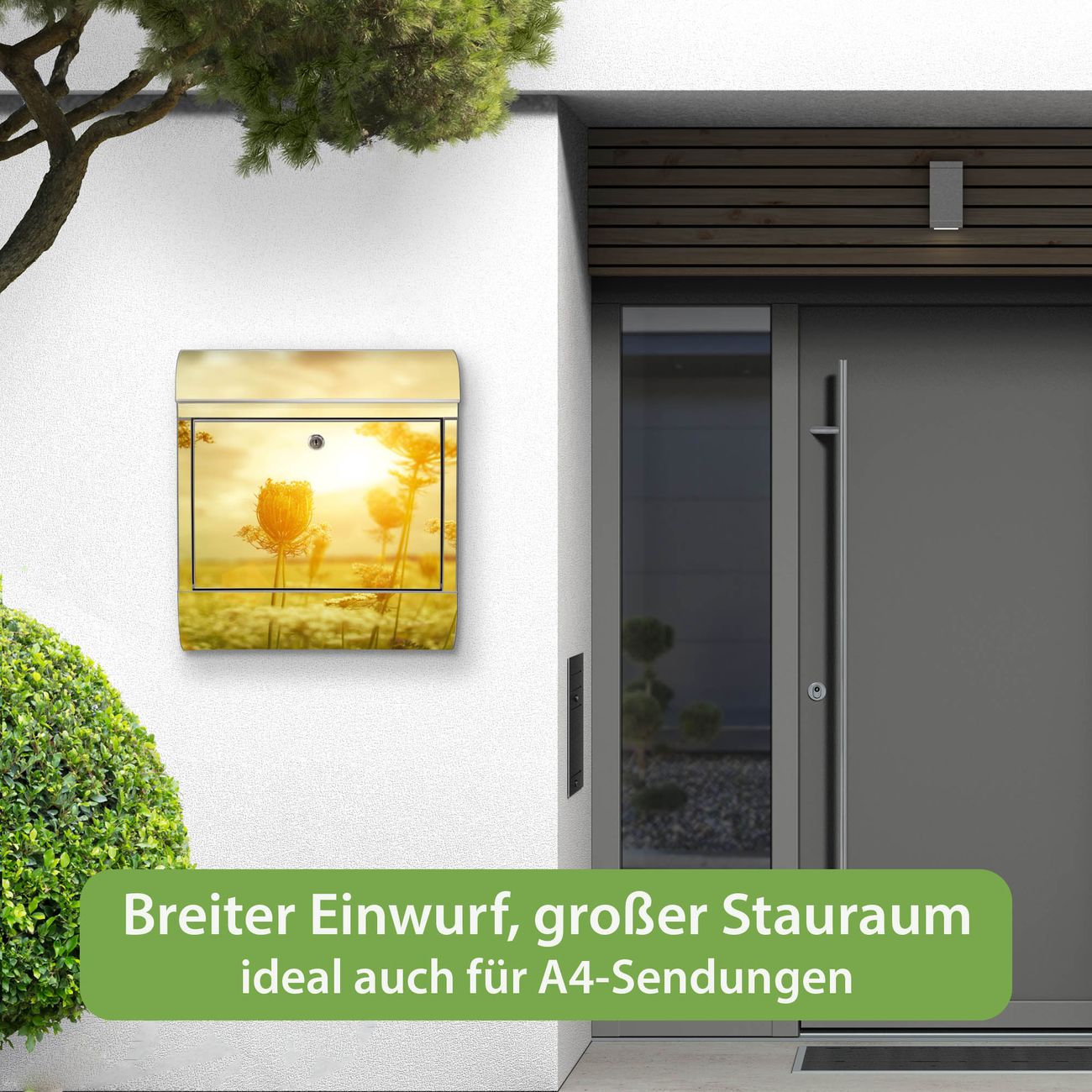 Wandbriefkasten Edelstahl Motiv Dill im Sonnenlicht