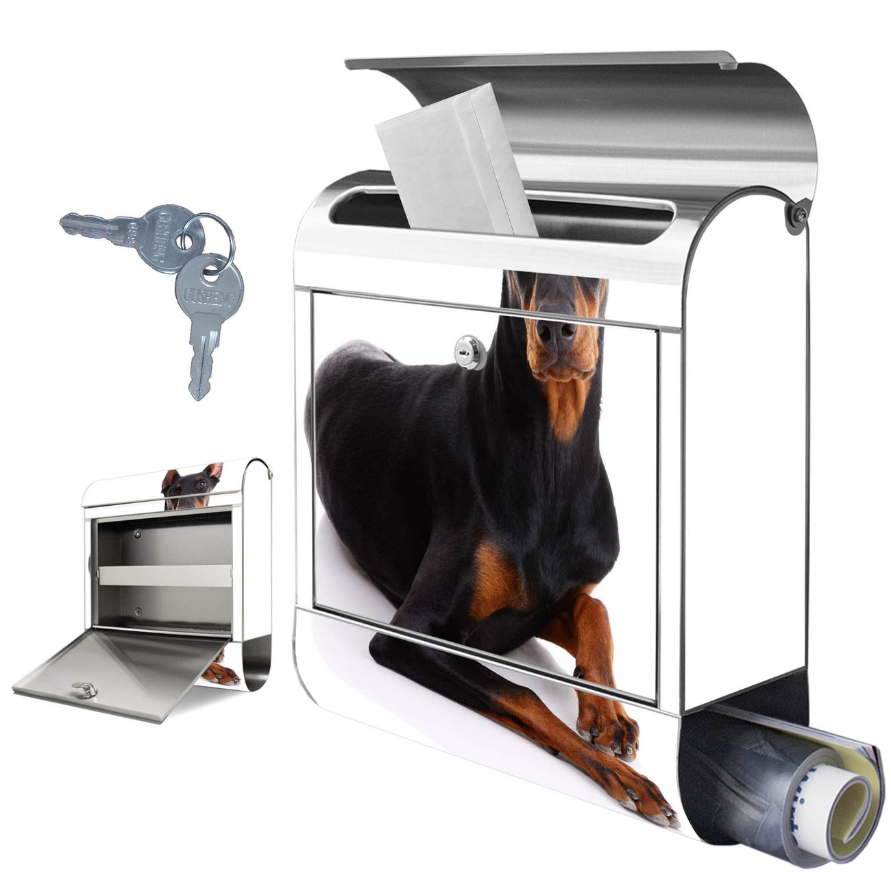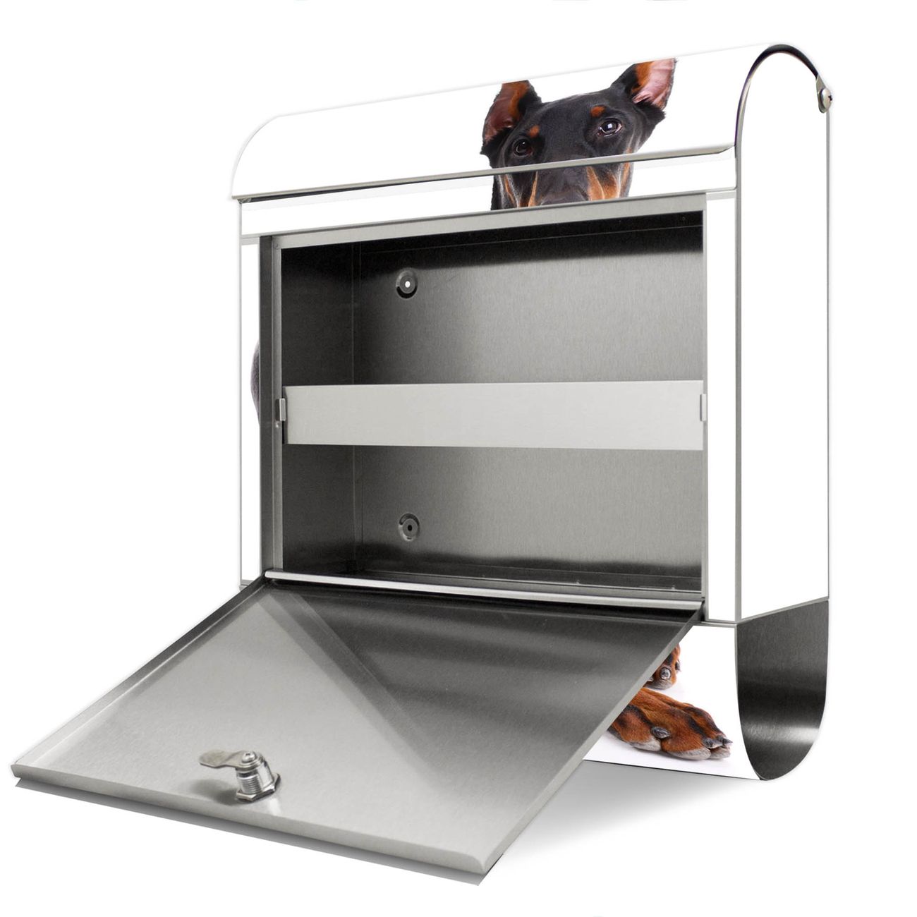 Wandbriefkasten Edelstahl Motiv Dobermann