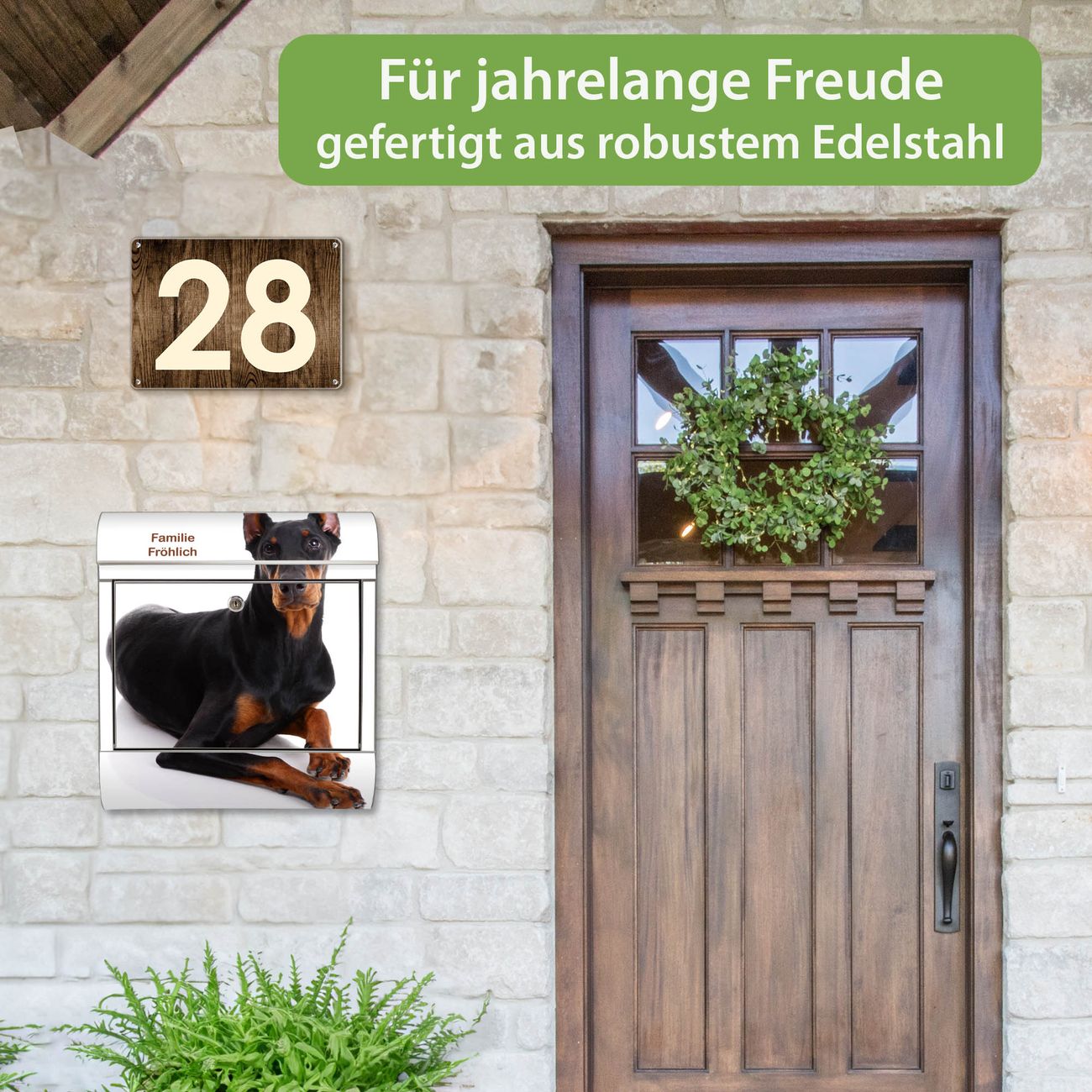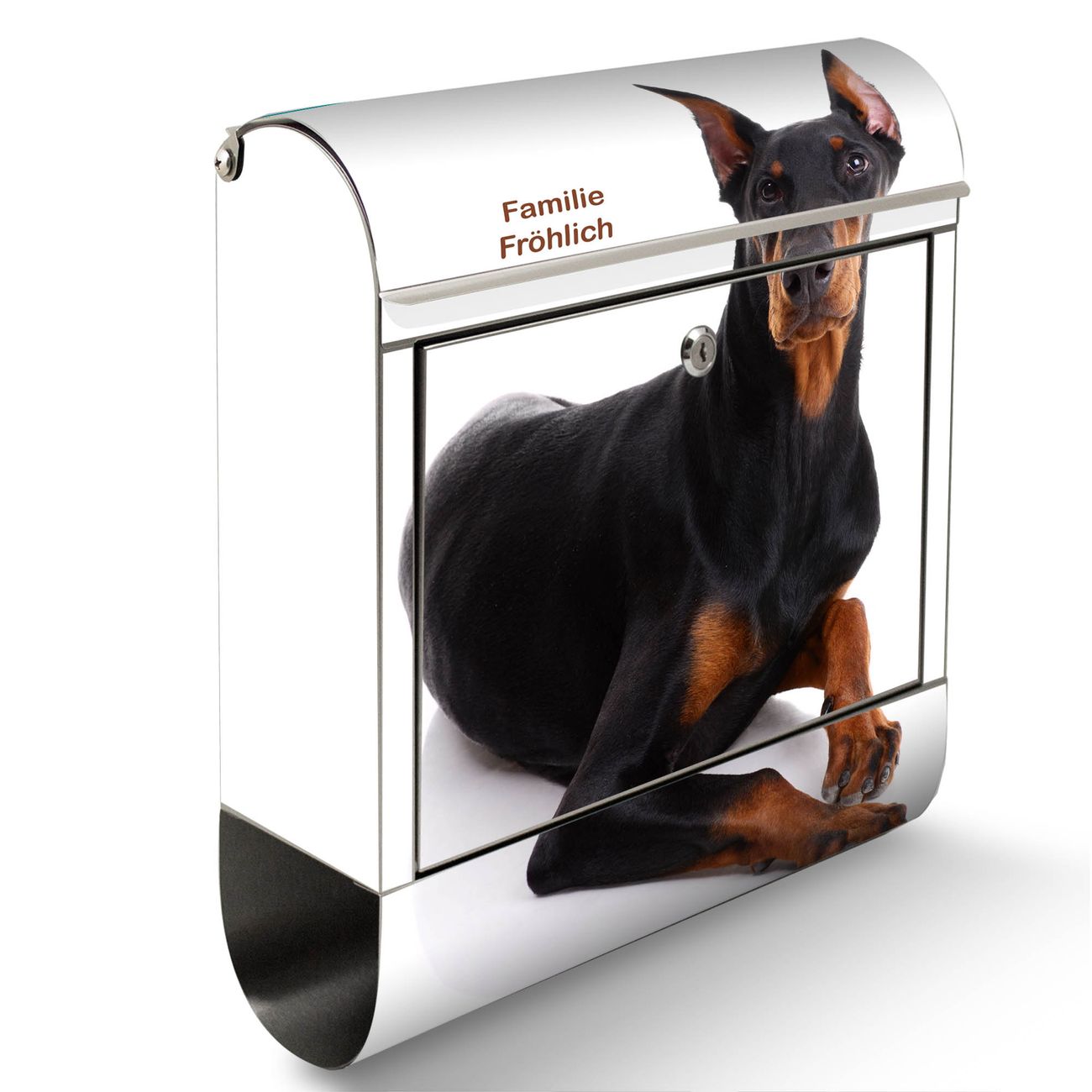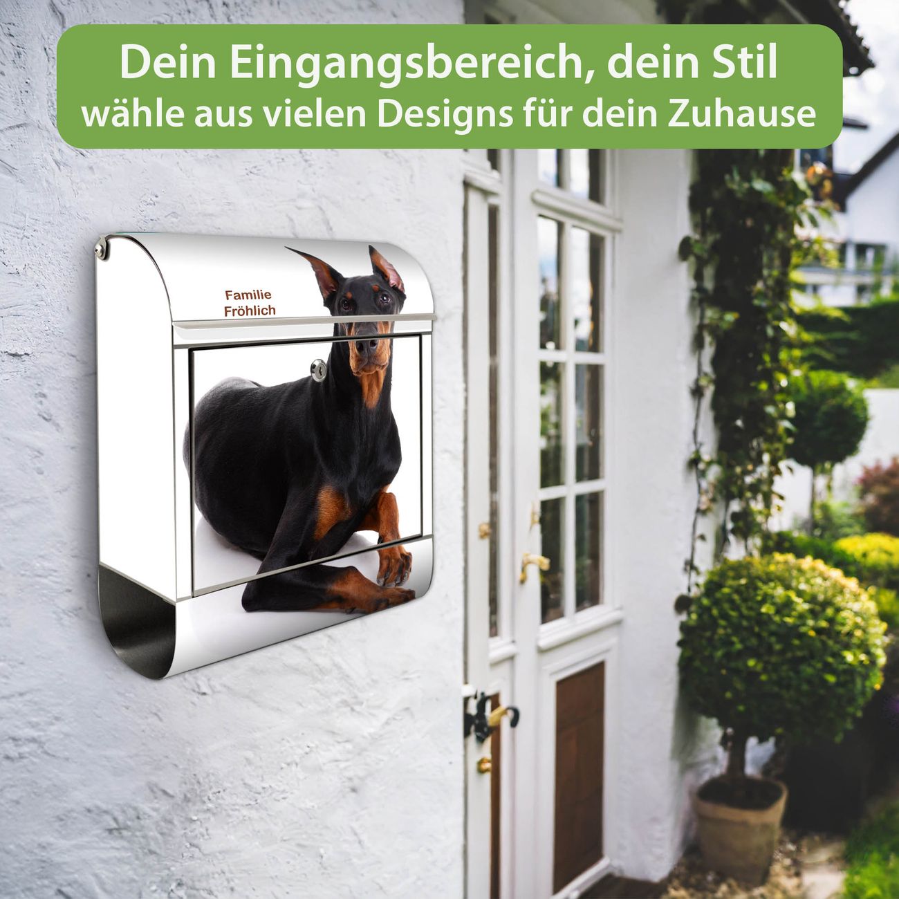 Wandbriefkasten Edelstahl Motiv Dobermann