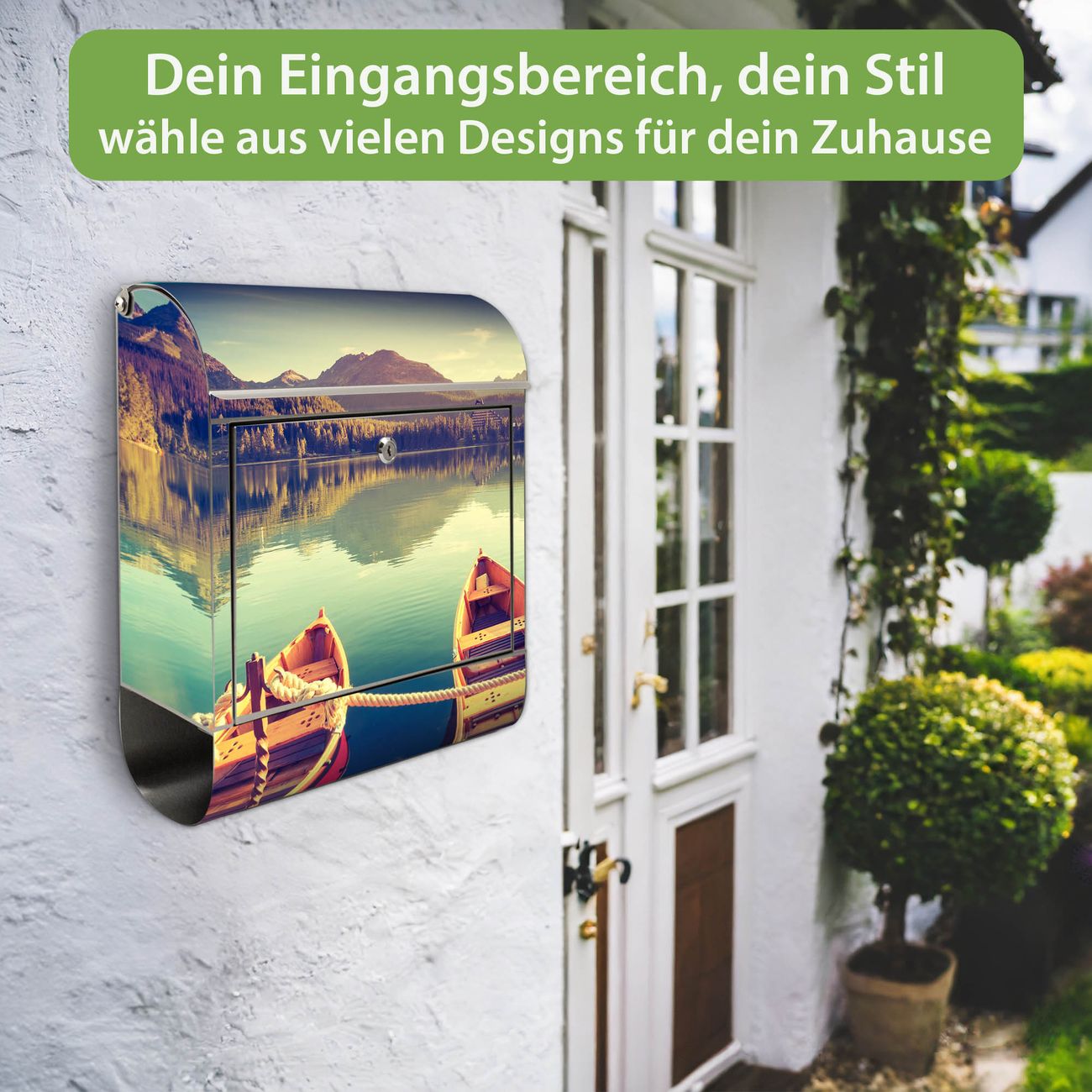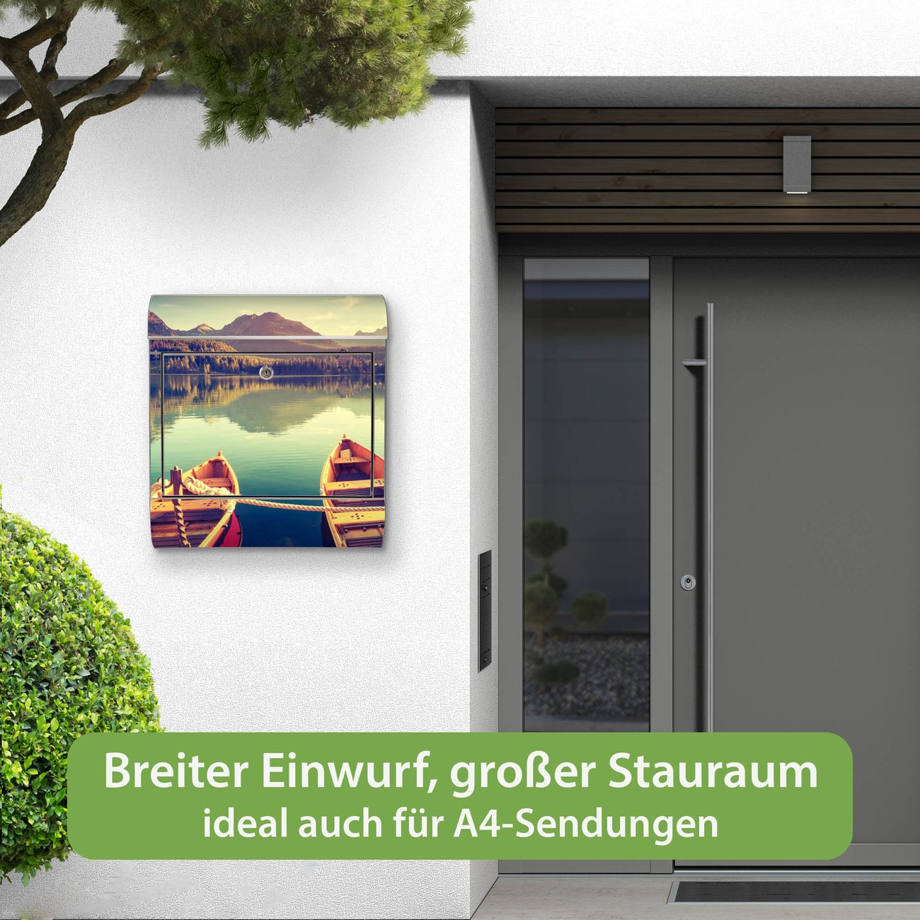 Wandbriefkasten Edelstahl Motiv Drei Boote Am Steg