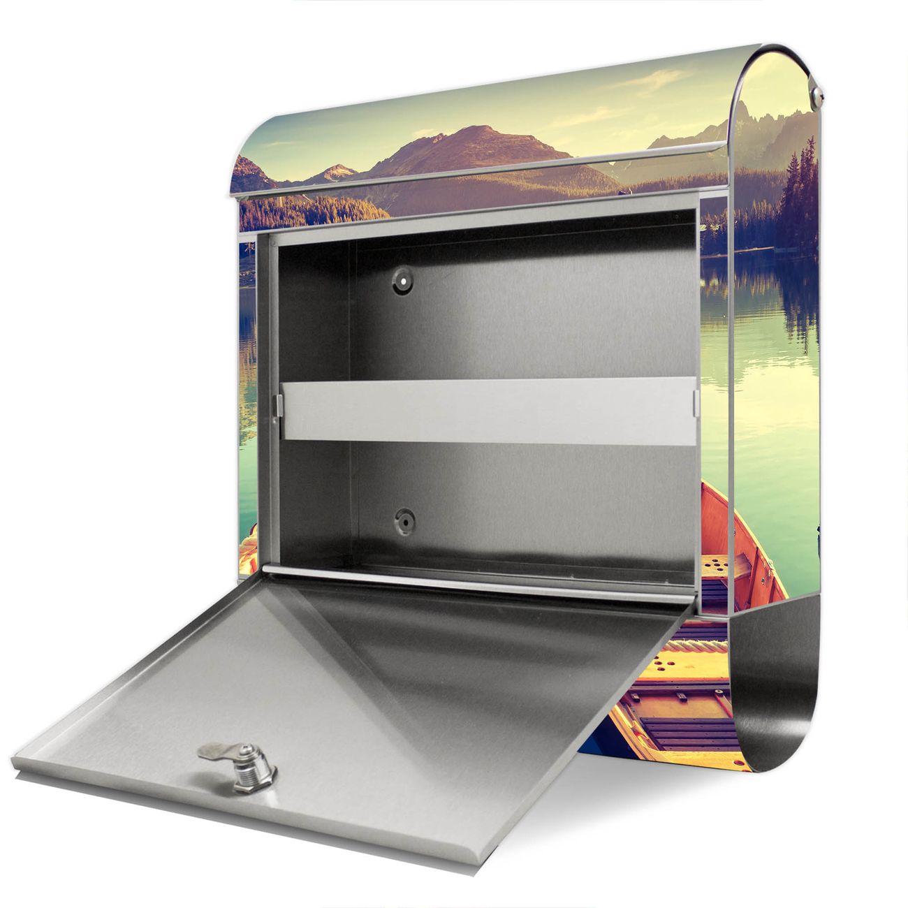 Wandbriefkasten Edelstahl Motiv Drei Boote Am Steg
