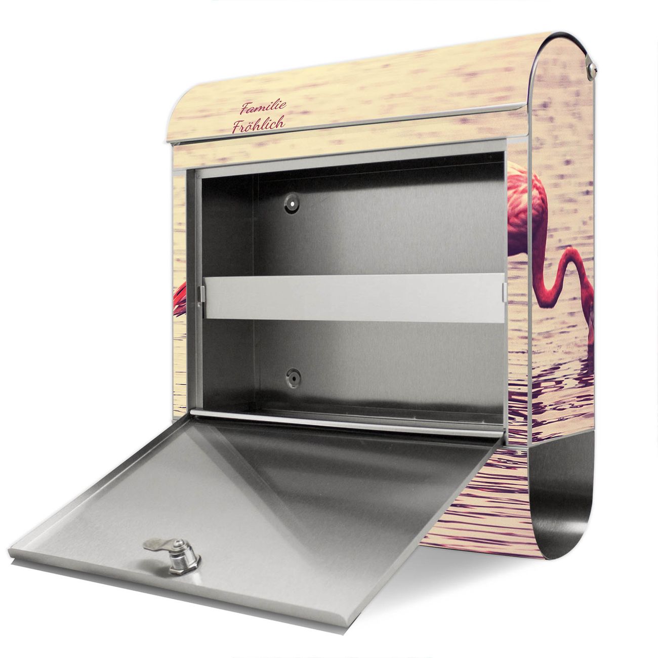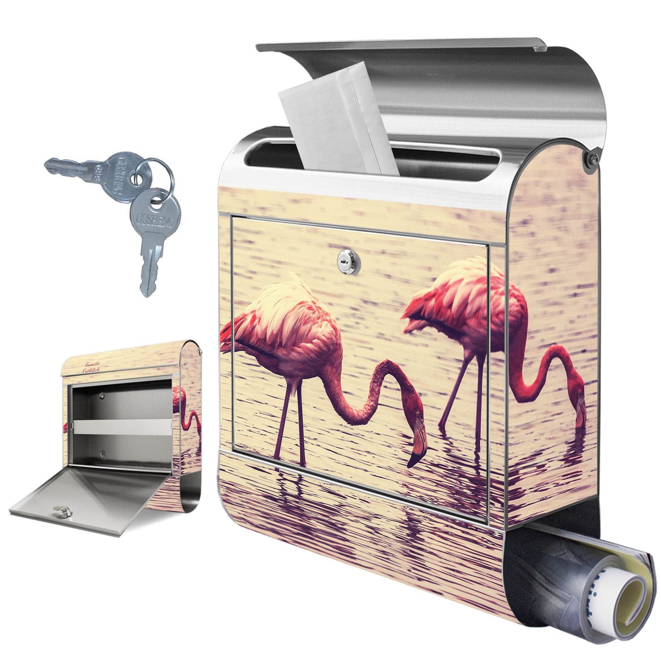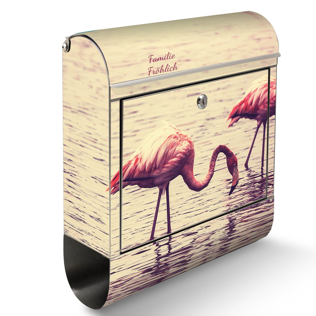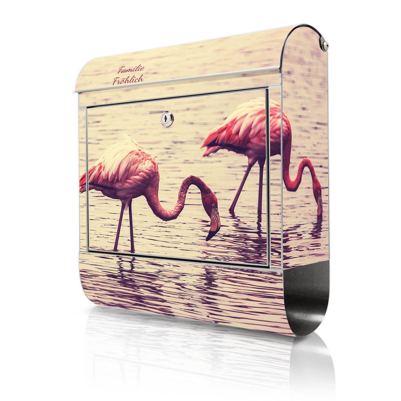 Wandbriefkasten Edelstahl Motiv Drei Flamnigos