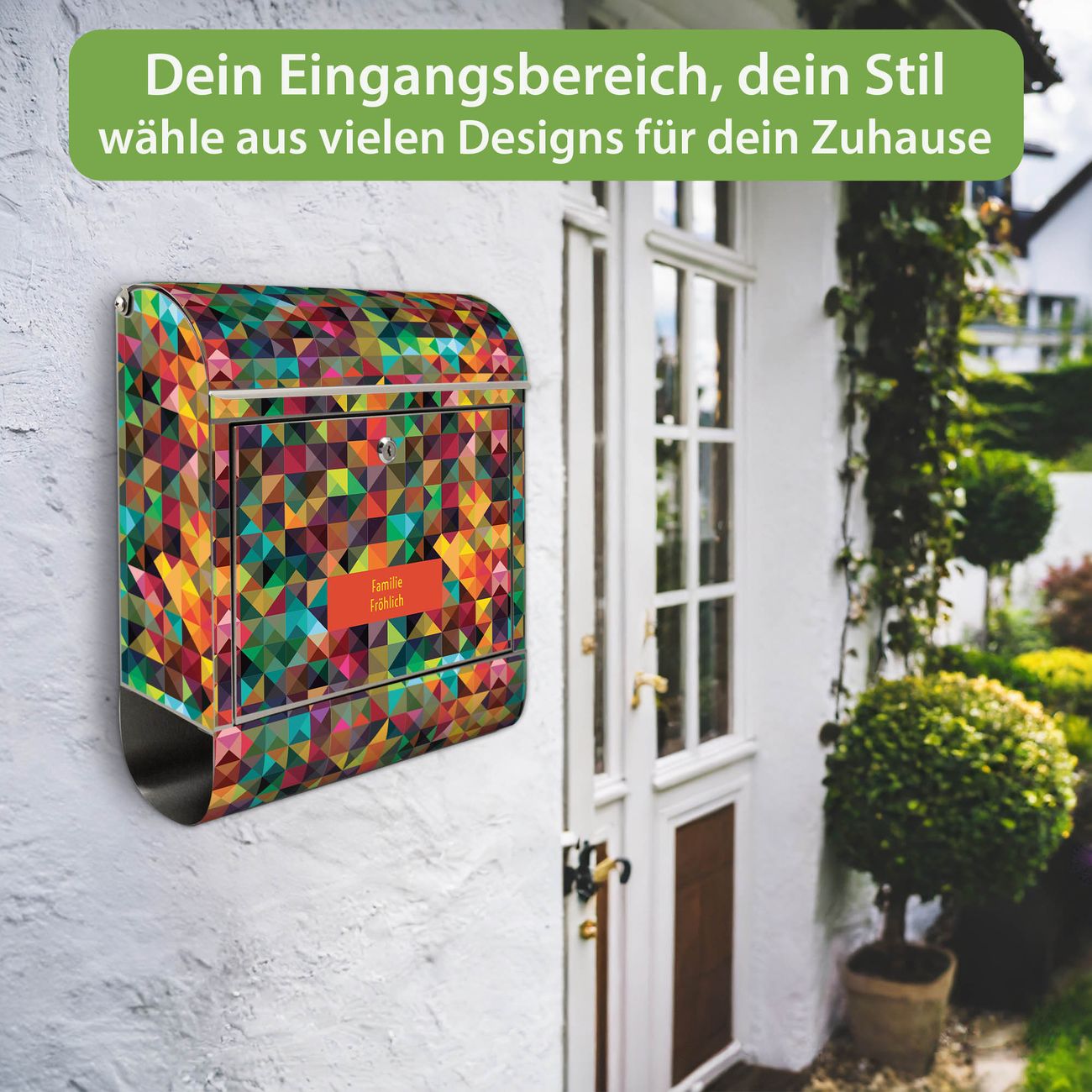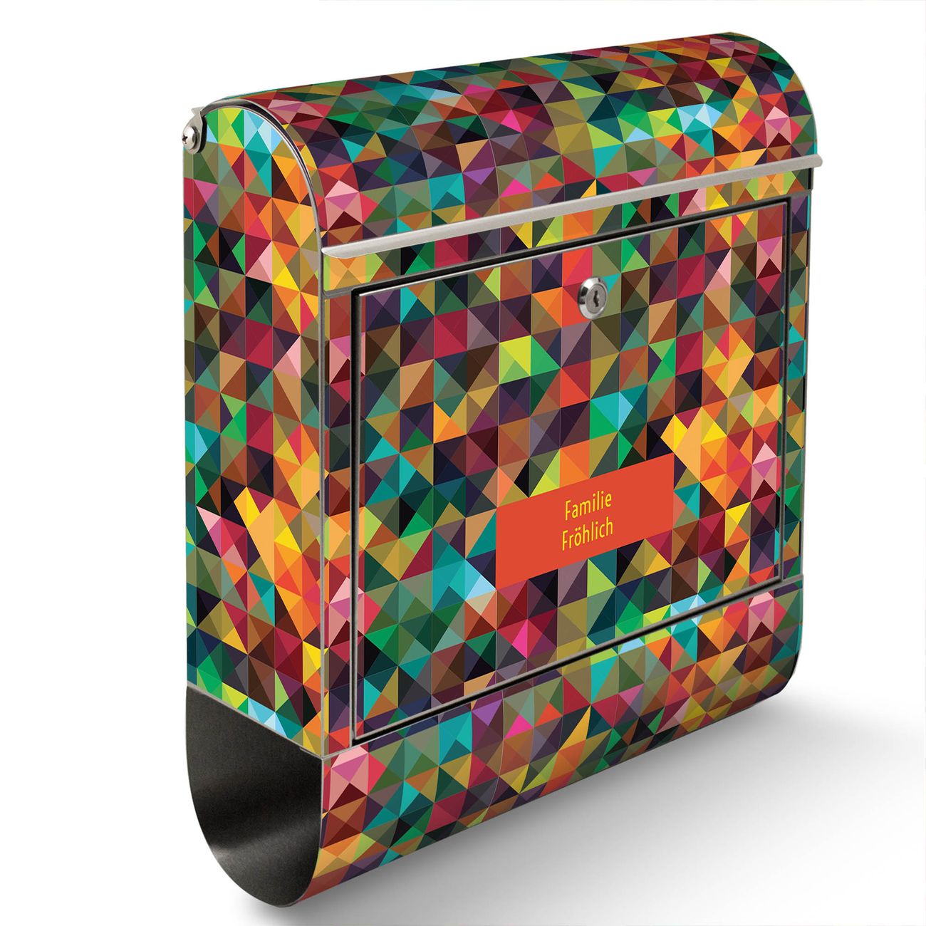 FUNKTION: Der banjado Edelstahl Briefkasten mit Motiv Motiv Dunkles Kaleidoskop bietet Ihnen mit seinem Fassungsvermögen genügend Platz auch für große A4 Sendungen. Das integrierte Zeitungsfach eignet sich hervorragend um unkompliziert die Tageszeitung zu fassen. Auf Wunsch können Sie bei uns den passenden Ständer kaufen und so aus dem Wandbriefkasten einen Standbriefkasten machen. DESIGN: Der Motivbriefkasten hat ein sehr ansprechendes und ausgefallenes Design, damit entlocken Sie Ihren Nachbarn und dem Postboten ein Lächeln. Heben Sie Sich ab von der tristen grauen Masse ohne auf Funktionalität zu verzichten. DETAILS: Der Design Briefkasten mit Motiv Motiv Dunkles Kaleidoskop besteht aus hochwertigem 18/0 Edelstahl. Das Motiv besteht aus einer wetter- und UV-resistenten Folie, die mit einem Schutzlaminat überzogen ist. Der Briefkasten wird mit Montagematerial und zwei Schlüsseln geliefert. NUTZEN: Sie können diesen Briefkasten sowohl als Wandbriefkasten montieren oder einen passenden Ständer auswählen und als Standbriefkasten einbetonieren. Die Größe bietet genügend Platz für Sendungen aller Art, das hochwertige Edelstahl ist rostfrei und die Motivfolie absolut wetterfest. SCHUTZ: Um Ihre Post optimal vor Witterungseinflüssen wie Starkregen zu schützen, empfehlen wir, den Briefkasten geschützt anzubringen. BANJADO: Ihr Briefkasten wird in Sachsen in einer kleinen Manufaktur von Hand veredelt. Die Motivfolie ist lösungsmittelfrei und schutzlaminiert, dies sorgt für einen langen Halt. Wir legen großen Wert auf die Verbindung von Funktionalität und Design. Sie erhalten Handarbeit aus Sachsen.